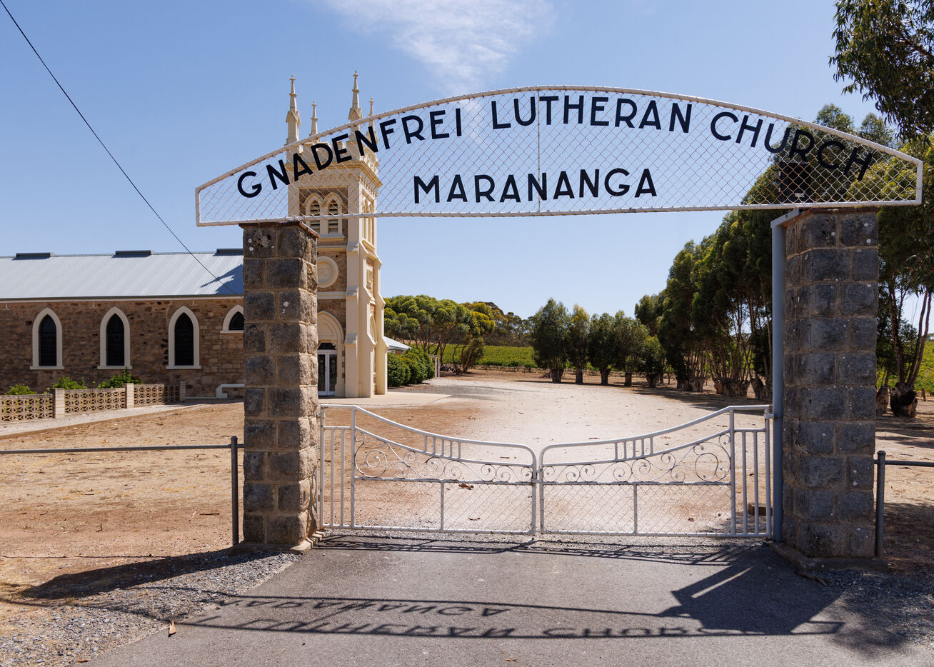 Nichée au cœur des vignobles de la Barossa Valley, l’église luthérienne de Marananga, autrefois appelée Gnadenfrei, incarne l’héritage des colons allemands venus s’installer en Australie au XIXᵉ siècle. Construite en pierre en 1873, elle se dresse avec simplicité au milieu des vignes, entourée d’un ancien cimetière où subsistent des inscriptions en allemand, témoins d’une mémoire encore vivante. Ce lieu discret raconte à la fois une histoire de foi, d’exil et d’enracinement. Aujourd’hui, il conserve une atmosphère paisible et intemporelle, tout en restant profondément lié à la culture viticole locale, faisant de cette petite église un symbole unique du patrimoine rural australien.