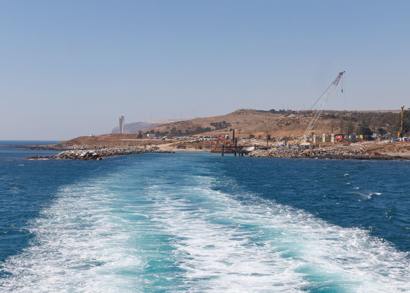 Le départ se fait à Cape Jervis, environ 2h d’Adélaïde, là où la route s’interrompt face à la mer. Quelques bâtiments, un terminal, puis l’horizon. Rien de spectaculaire, sinon cette impression d’être déjà au bord de quelque chose.