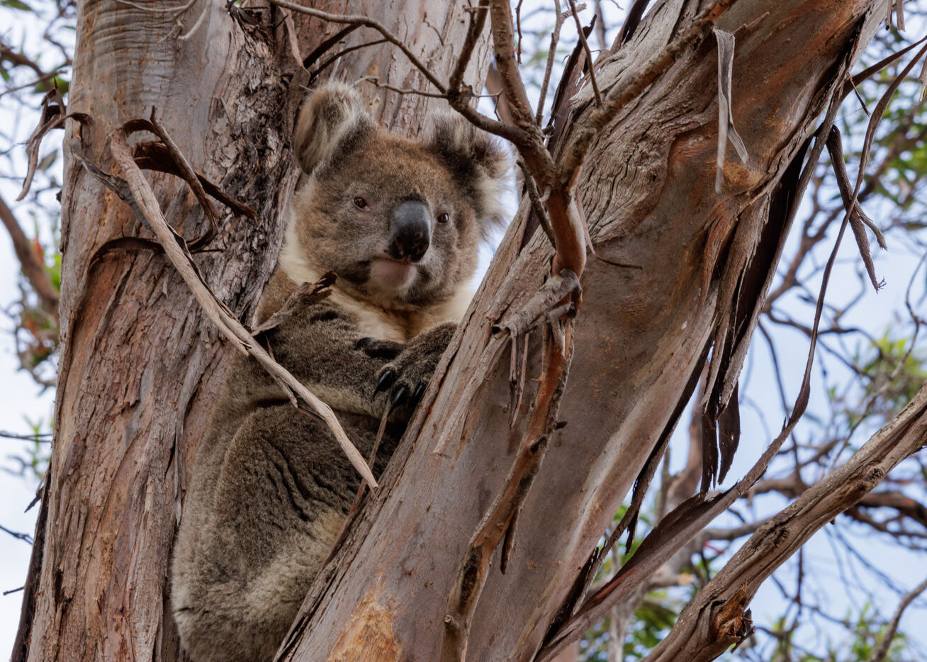 On the road to Seal Bay, Kangaroo Island, koalas are part of regular observations, provided you look up. Perched in eucalyptus, these marsupials spend most of the day motionless, hidden in the foliage.
