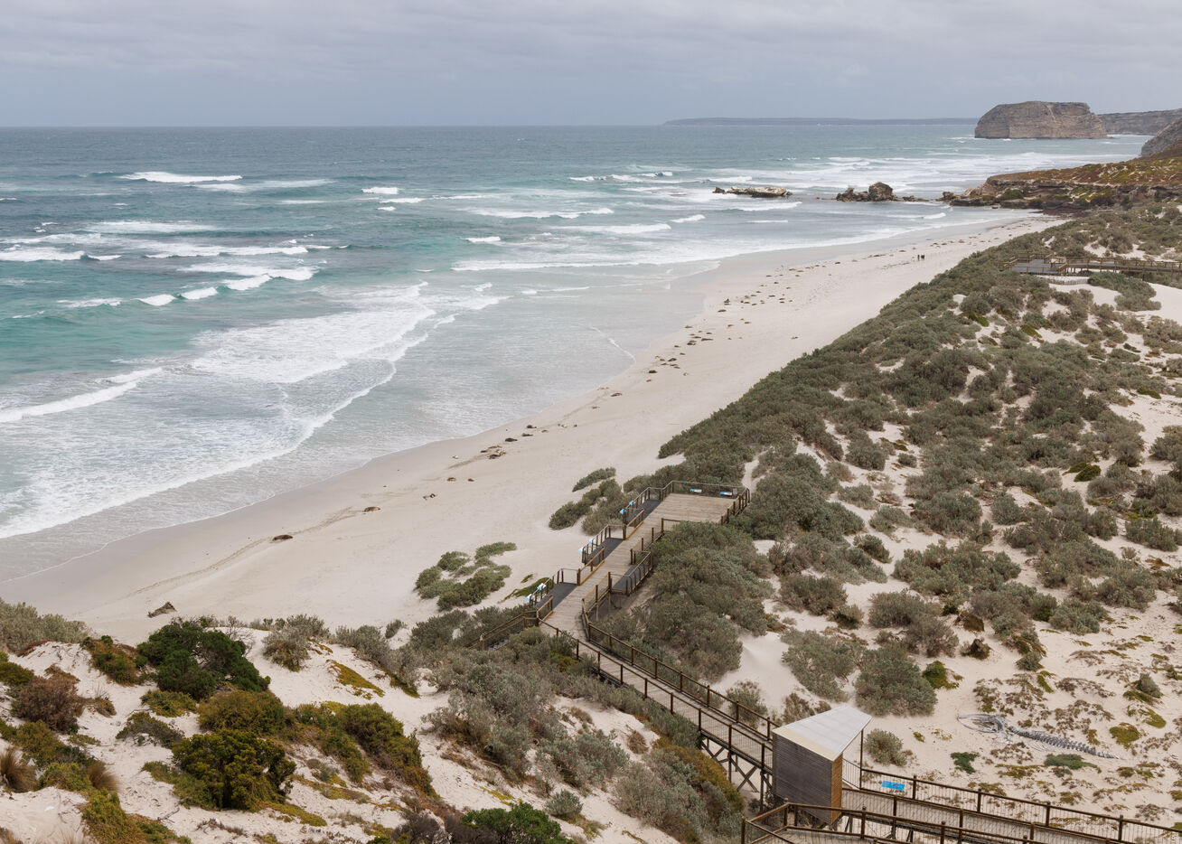 Sur la côte sud de Kangaroo Island, Seal Bay Conservation Park abrite l’une des colonies les plus accessibles de lions de mer australiens (Neophoca cinerea). Ici, pas de falaises abruptes ni d’observation lointaine : les animaux une colonie d’environ 600 à 800 individus se reposent directement sur la plage, à quelques mètres seulement des visiteurs encadrés.