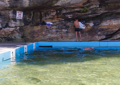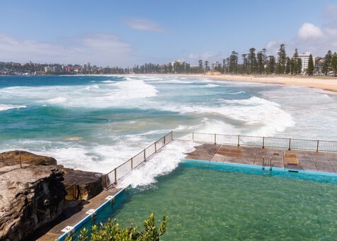 At the northern tip of Manly Beach, the Queenscliff Rock Pool offers a rougher scene, directly exposed to the ocean. Dug into the rock and fed by the tides, this natural pool is distinguished by its immediate proximity to the waves, which sometimes cover it during strong waves.