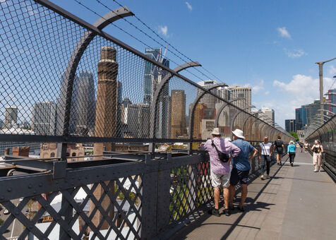 Accessible free of charge to pedestrians, the secure walkway located on the east flank of the bridge offers a crossing of about one kilometer, usually covered in less than thirty minutes. From this secure path, the view embraces a dense panorama: ferries in circulation, skyscrapers in the business district, and, below, the animated docks of Circular Quay. Vis-à-vis, the white sails of the Sydney Opera House recall the architectural modernity that dialogues with the industrial heritage of the bridge.