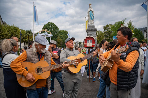 Une demande en mariage, des motards, des militaires, des fanfares, des cavaliers en costume, un chanteur italien, des guitaristes gitans,… , ce n’est pas forcement ce à quoi on s’attend en allant en pèlerinage à Lourdes.