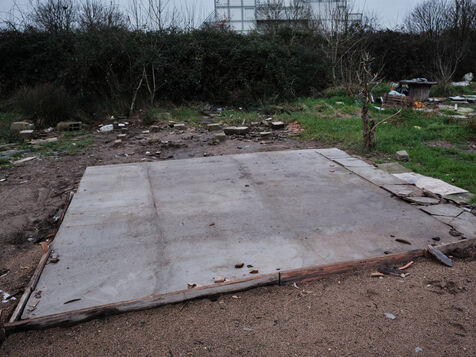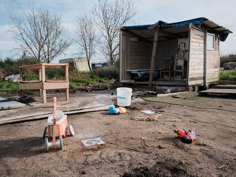 Aperçu d'un travail au long cours débuté au printemps 2024 suivant la vie de familles Roms dans les bidonvilles Nantais.