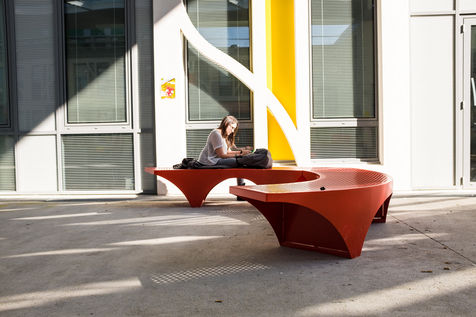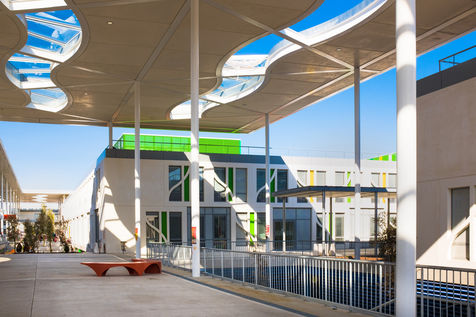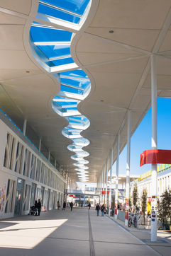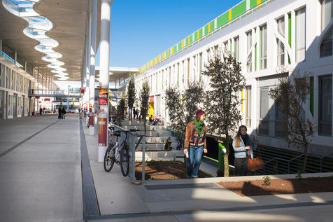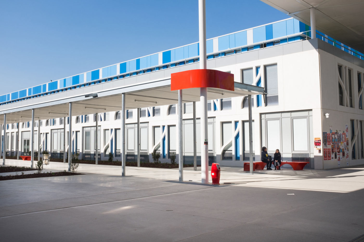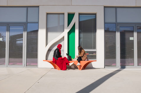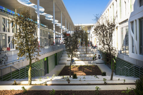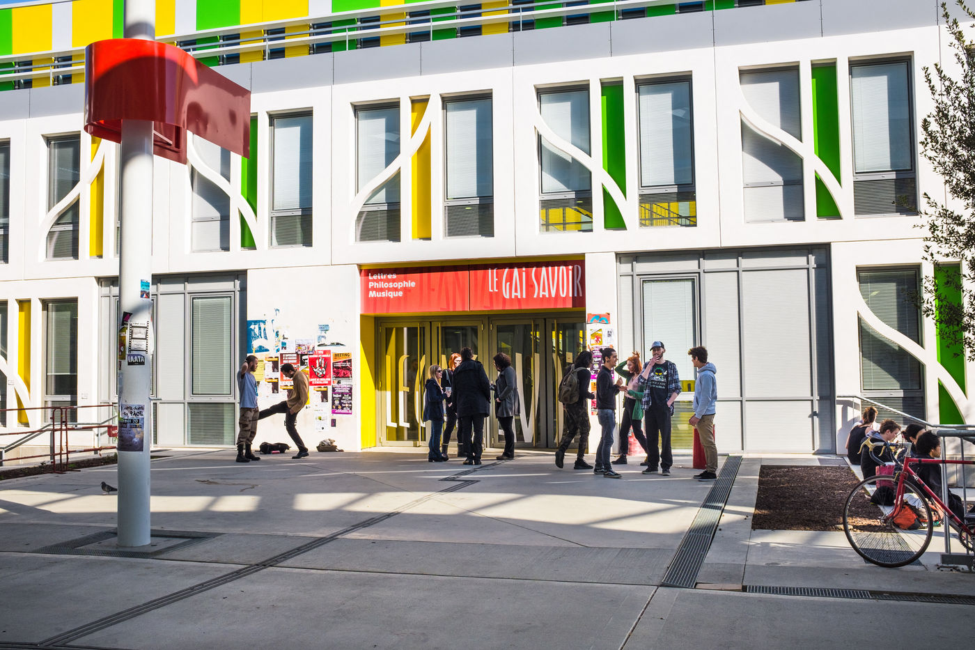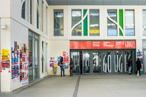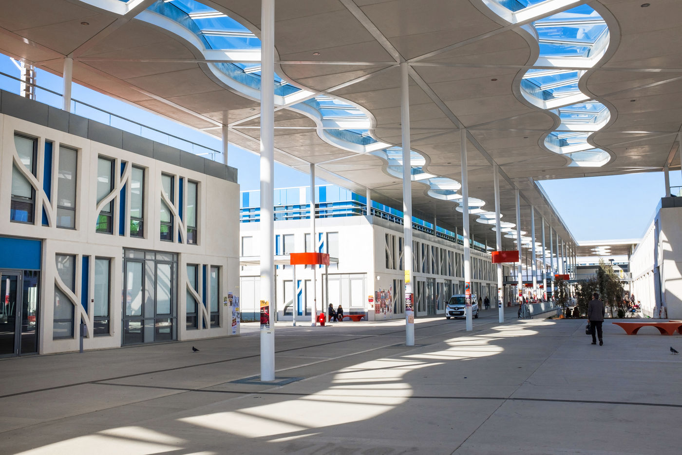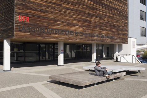 Les UFR (philosophie, lettres, Musique, mais aussi Histoire, Géographie, Arts, Société...) notamment de part et d'autre d'une grande allée blanche couverte d'une élégante canopée et rythmée par un code couleur primaire et le bleu du ciel.