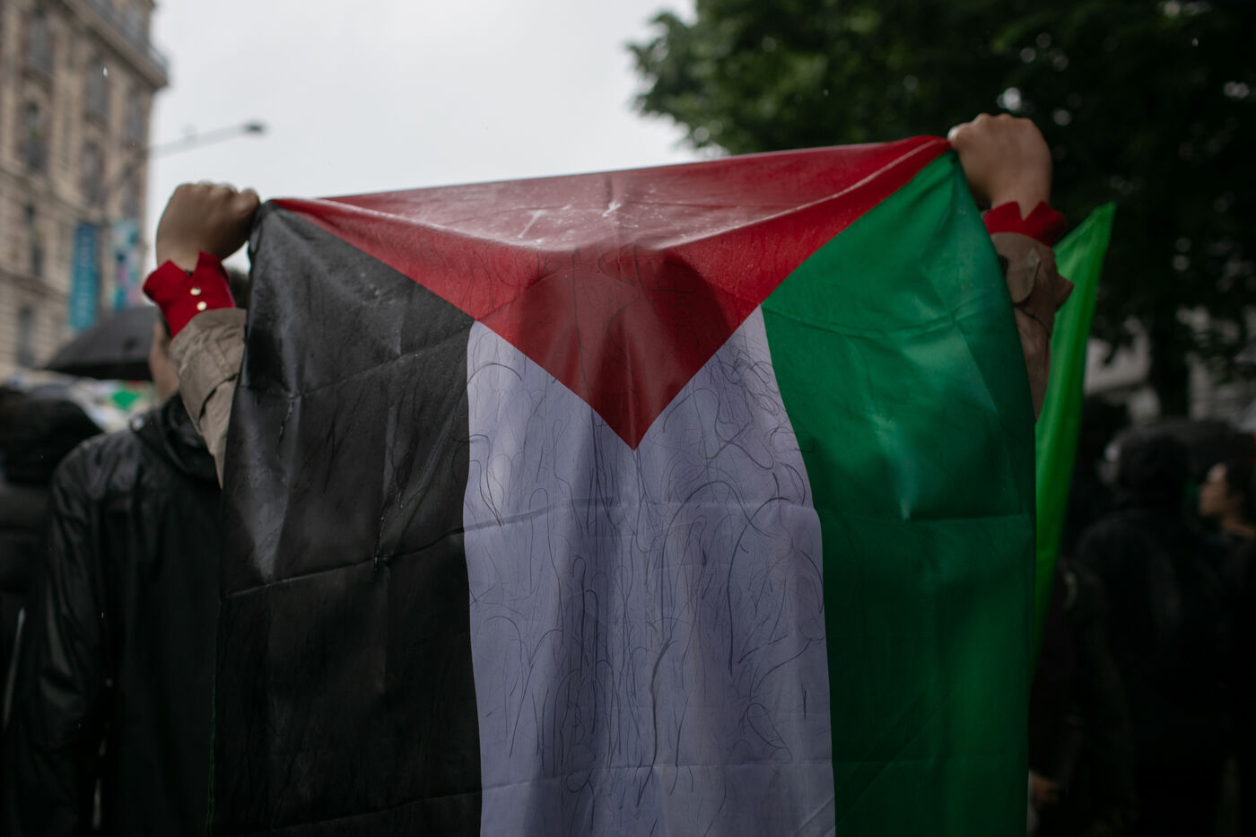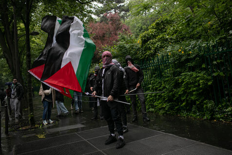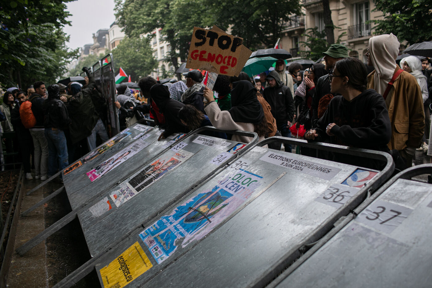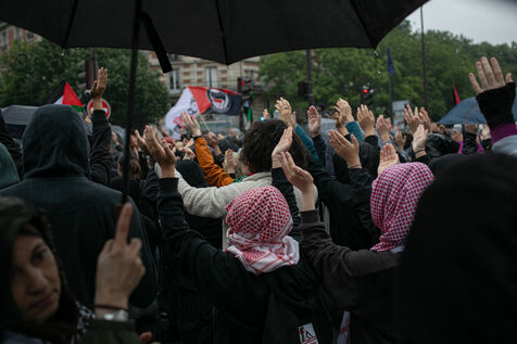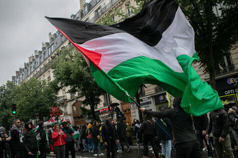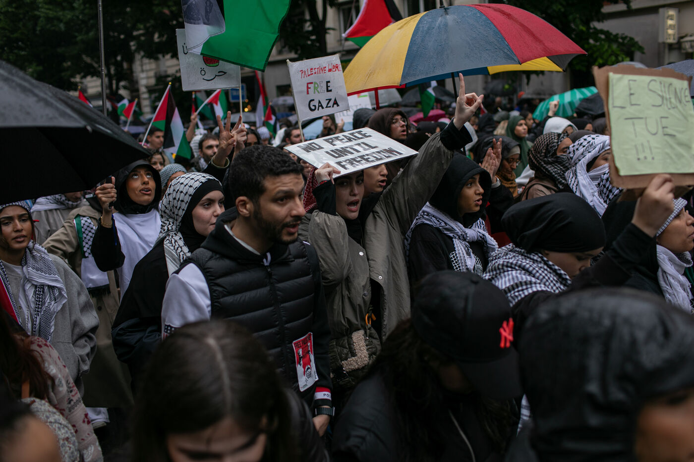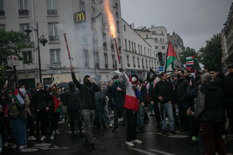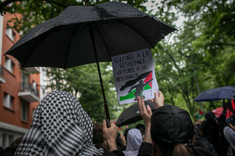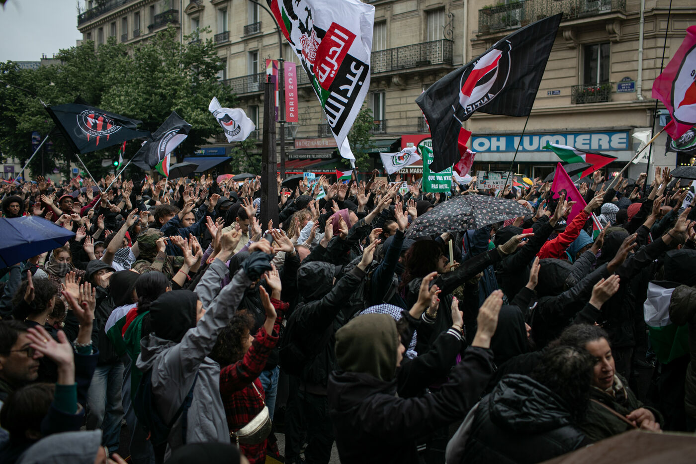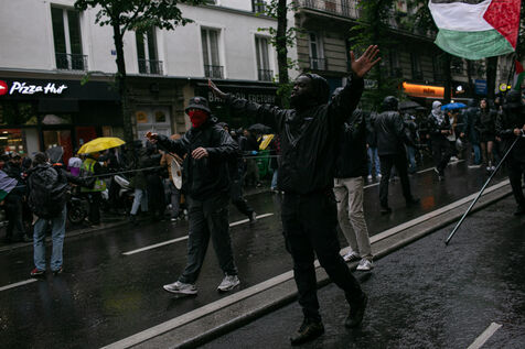 FRANCE, Paris 01 juin 2024, manifestation antifasciste en hommage à Clément et en soutien au peuple palestinien et kanaky. Clément Meric était un jeune militant antifasciste qui a été assassiné a Paris par des neo Nazis en 2013. Photographie par Victoria Valdivia Trigo / Hans Lucas.