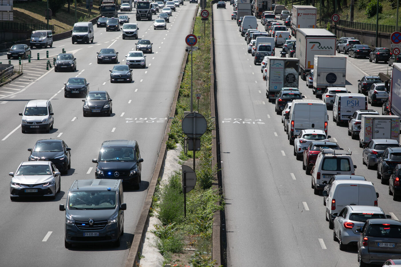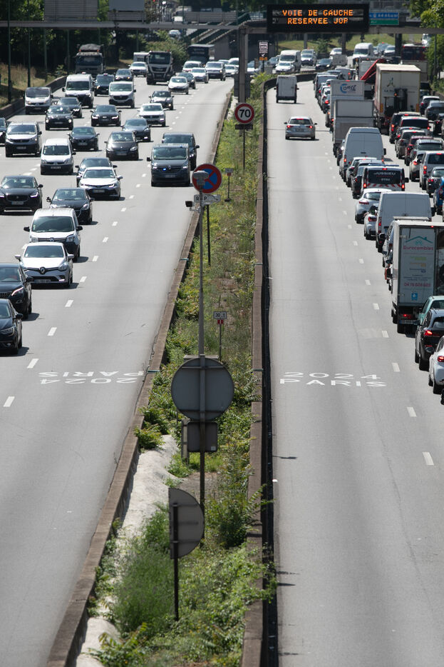 FRANCE, Paris, July 17, 2024, Illustration of the exclusive left lane of the ring road for the Olympic Games. Photography by Victoria Valdivia Trigo / Hans Lucas.
