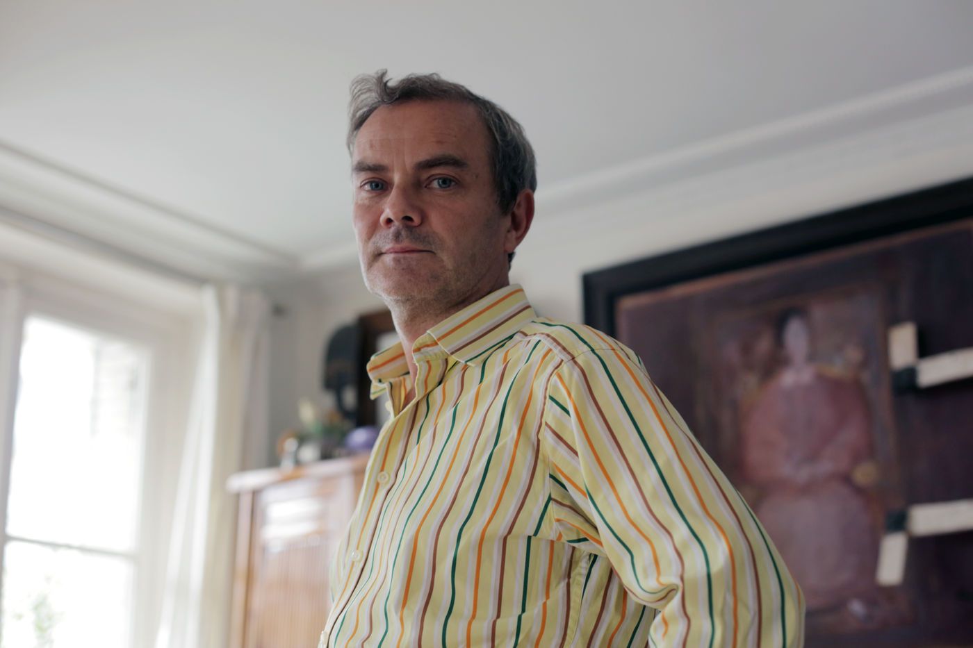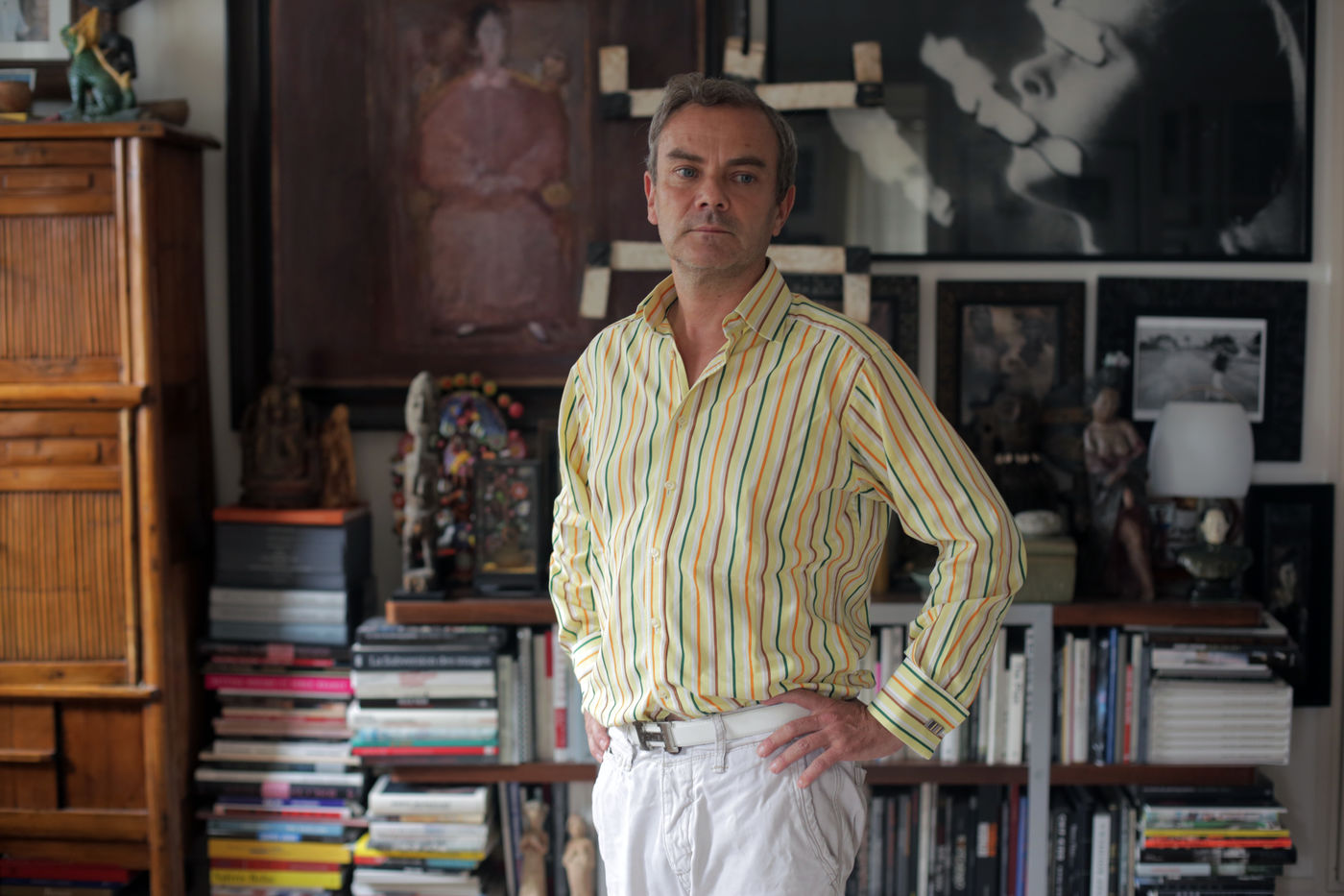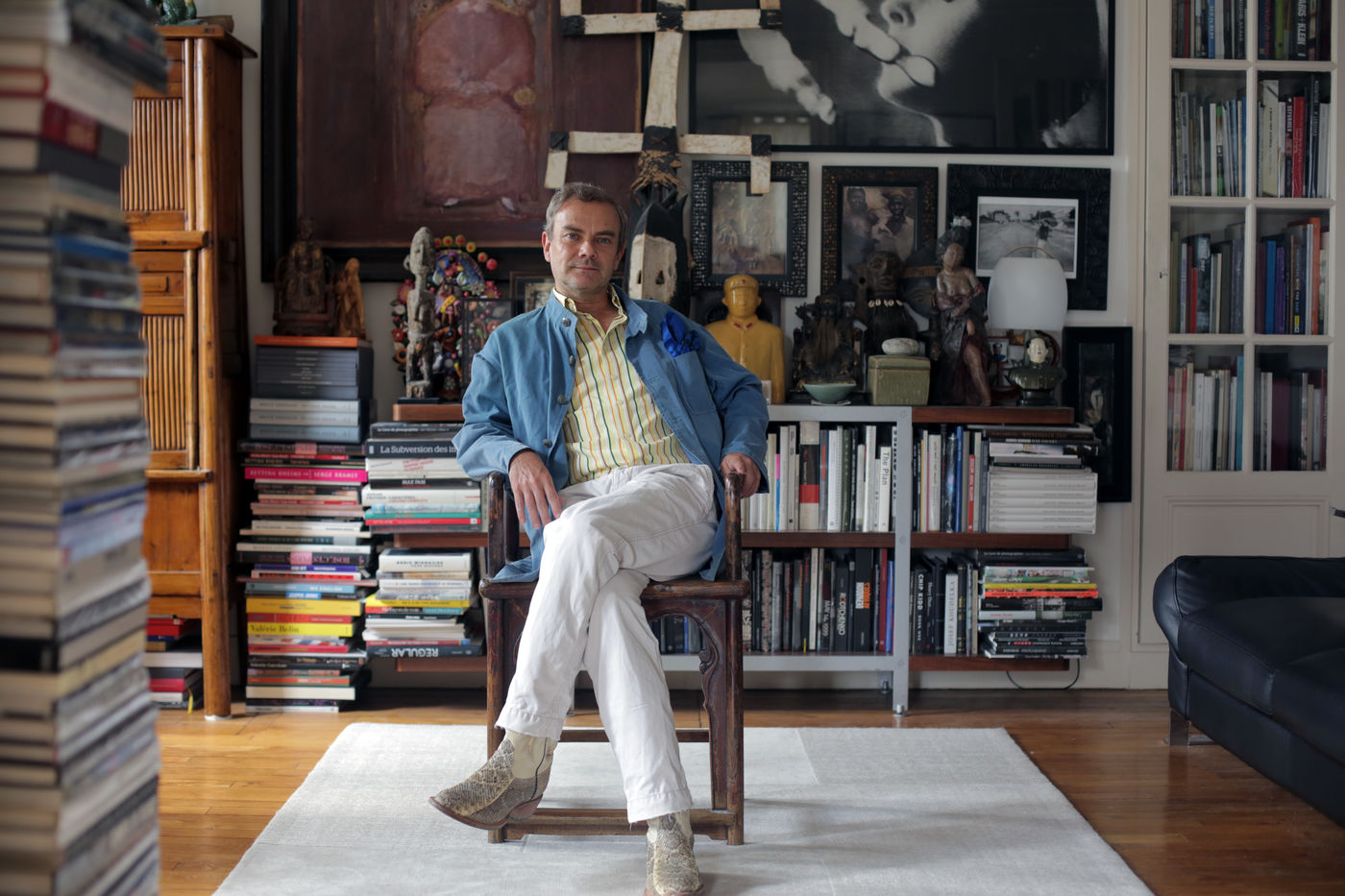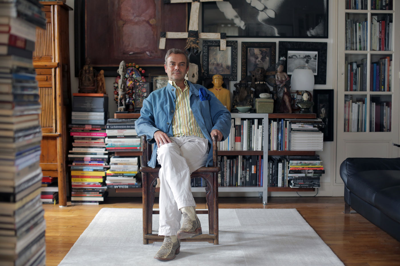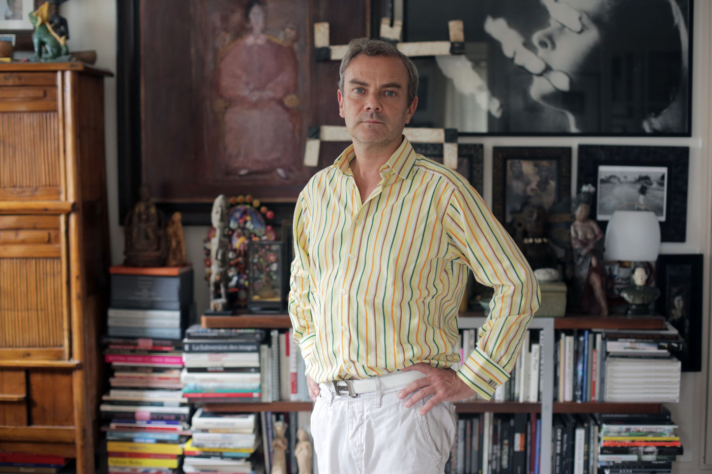 Pierre Bessard chez lui à Paris en septembre 2012. Cet artiste français est photographe et réalisateur de documentaires. Il se consacre aujourd'hui essentiellement à ses livres et à ses peintures sur photographies.