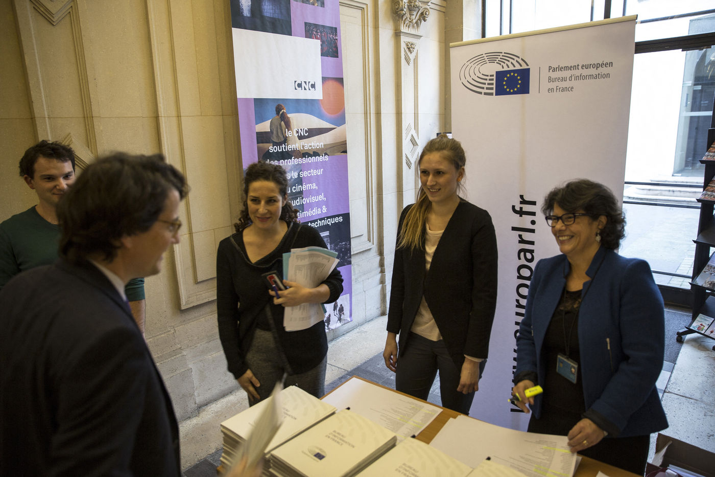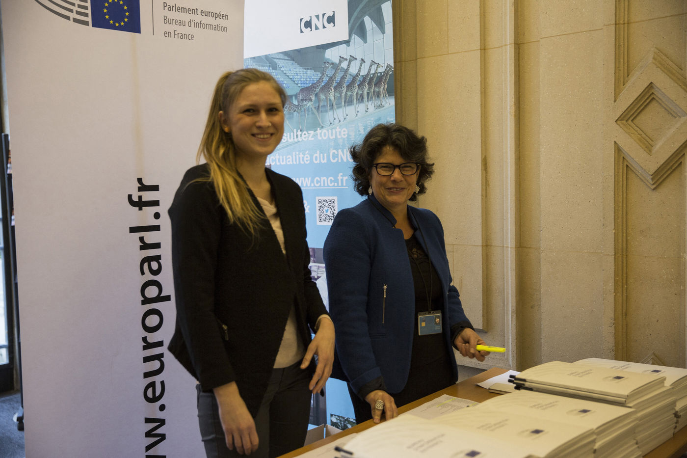 En présence de Christophe Tardieu (Directeur Général délégué du CNC), Isabelle Coustet (Cheffe du bureau d'information en France du Parlement européen), Sarah Drouhaud (modératrice, rédactrice en chef du Film Français). Intervention des députés européens Petra Kammerevert, Jean-Marie Cavada, Constance Le Grip et de Martin Ajdari (Ministère de la Culture et de la Communication) et d'Alban de Nervaux (Ministère de la Culture et de la Communication).