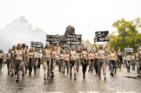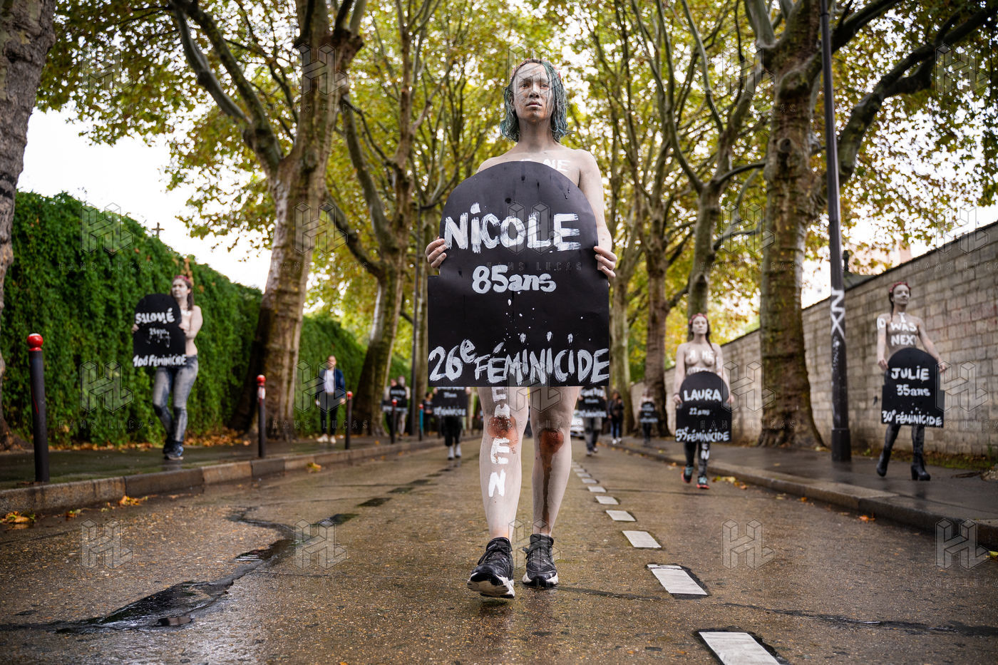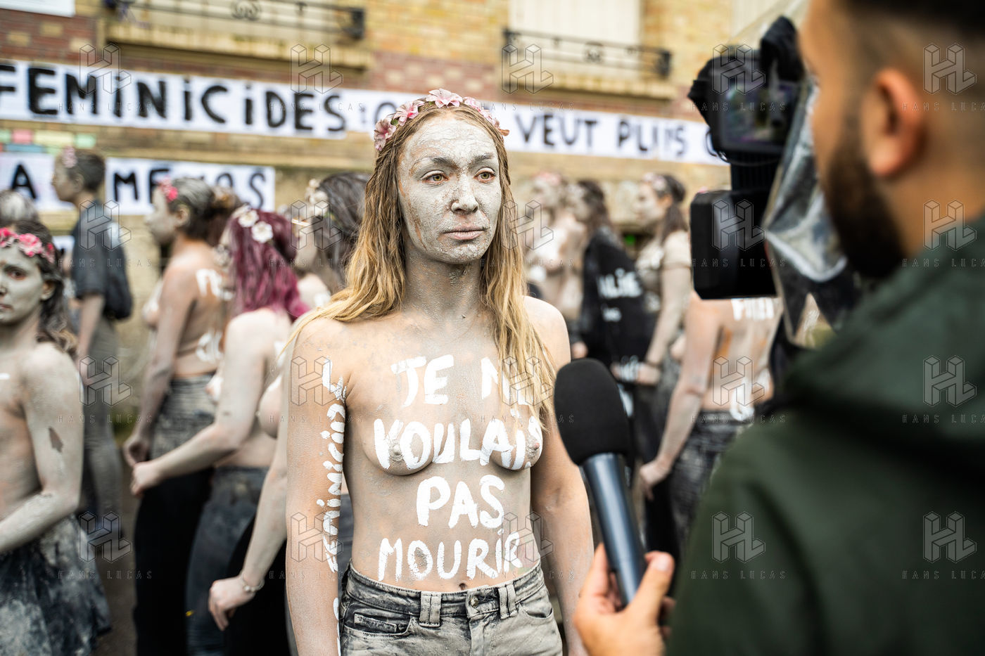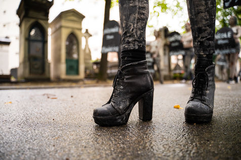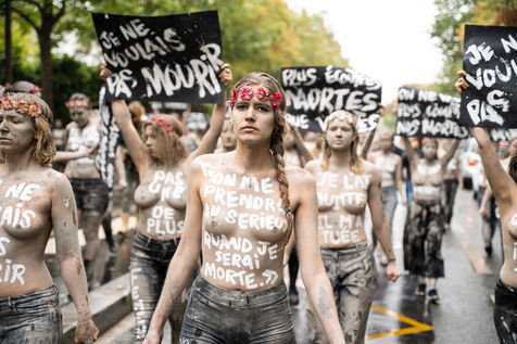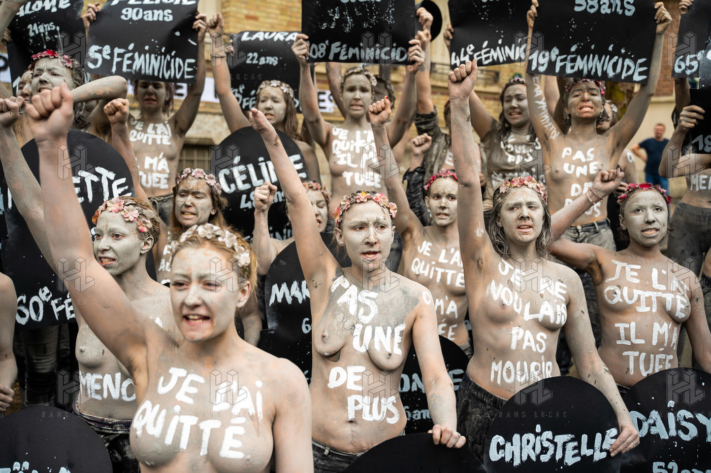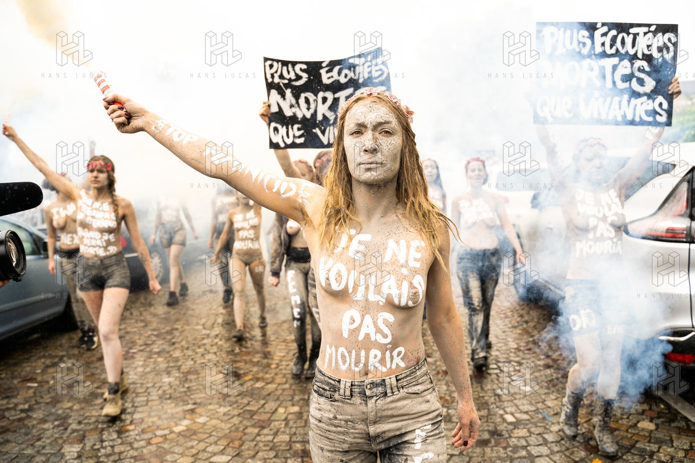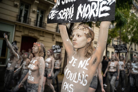 "Plus écoutées mortes que vivantes", dénonçaient les Femens, qui ont défilé dans le quartier puis dans le cimetière, où elles ont posé avec des stèles en références aux 114 femmes tuées par leur compagnon ou ex-compagnon depuis le début de l'année 2019.