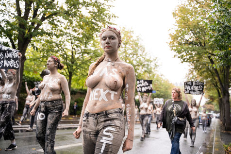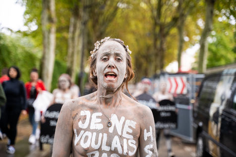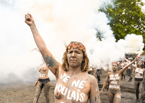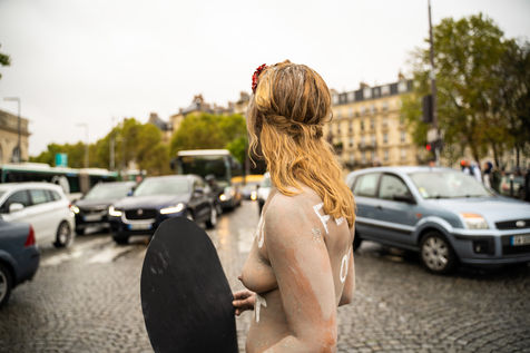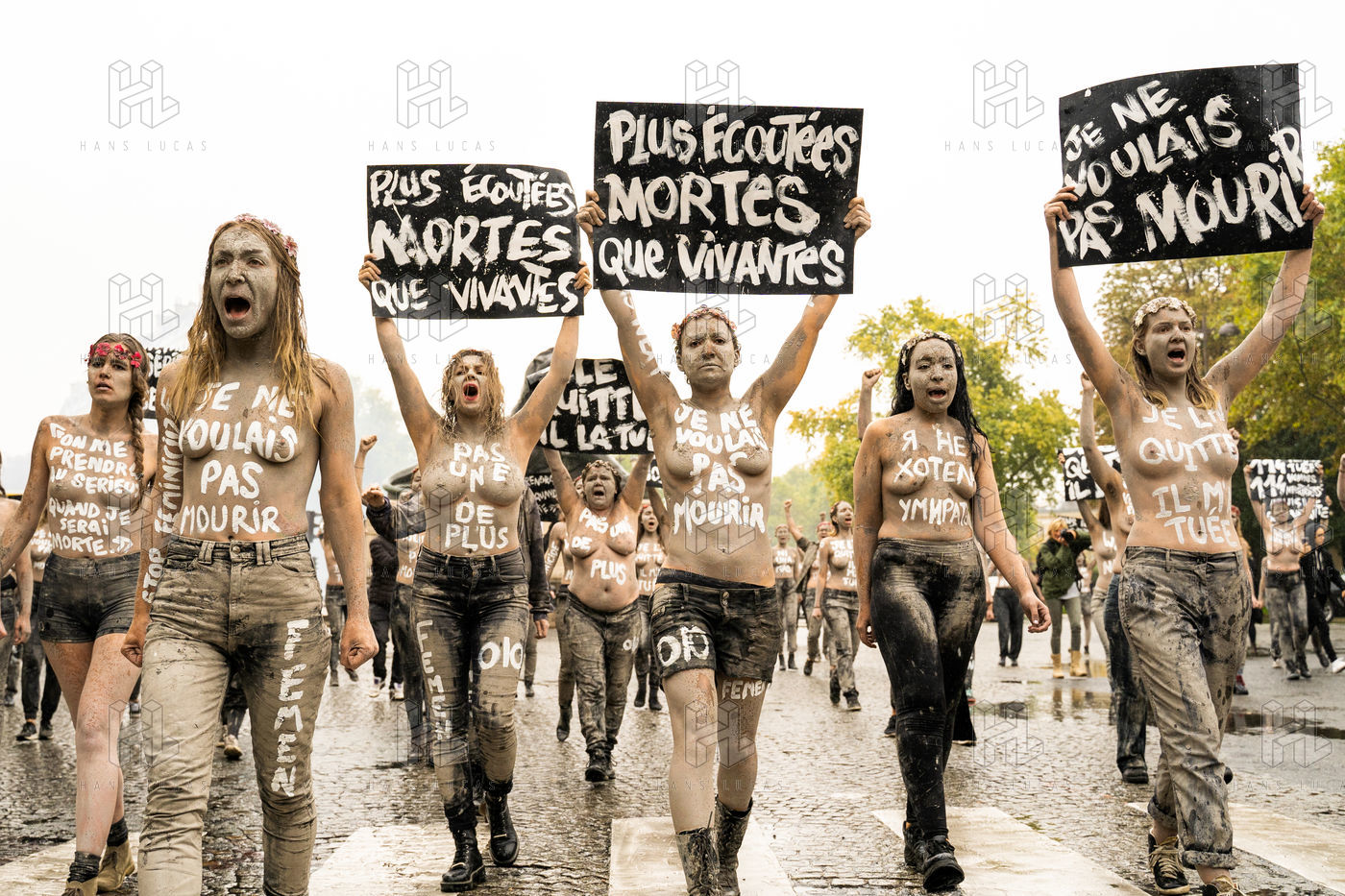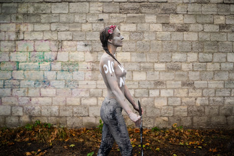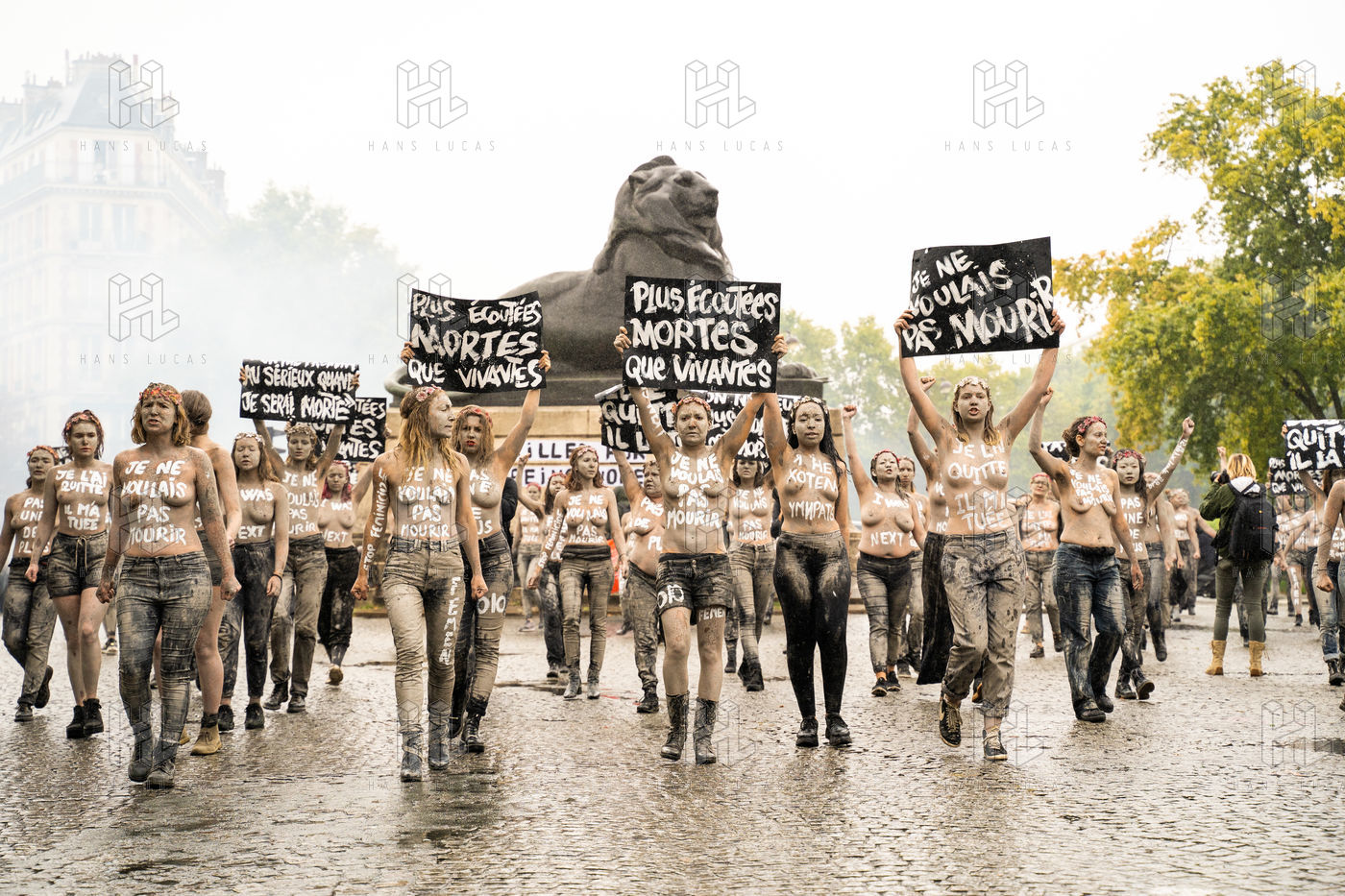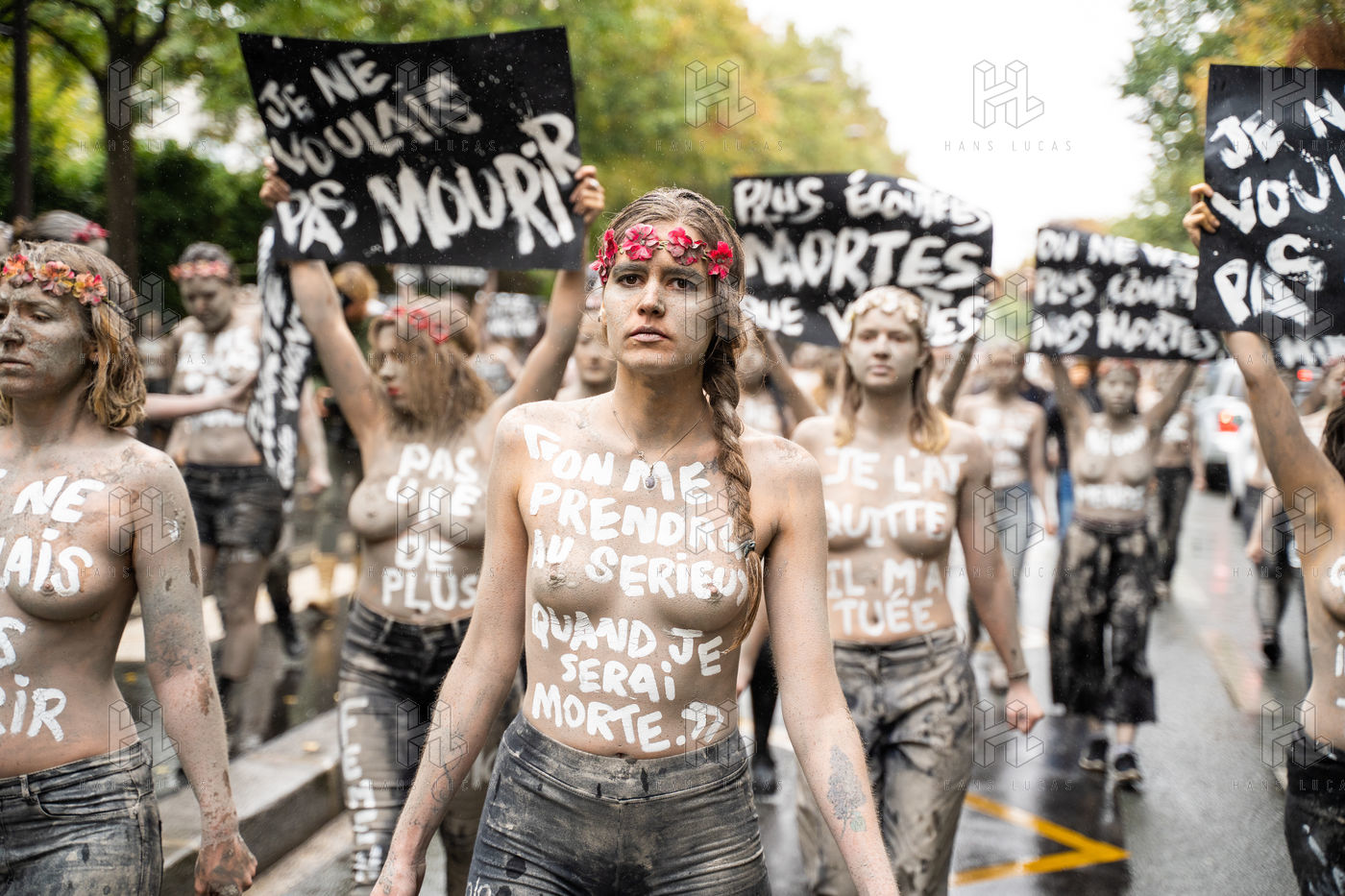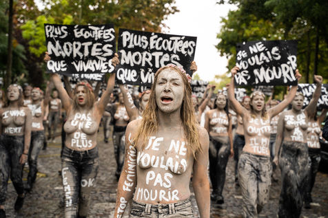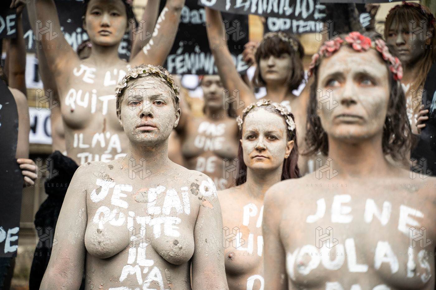 "Plus écoutées mortes que vivantes", dénonçaient les Femens, qui ont défilé dans le quartier puis dans le cimetière, où elles ont posé avec des stèles en références aux 114 femmes tuées par leur compagnon ou ex-compagnon depuis le début de l'année 2019.