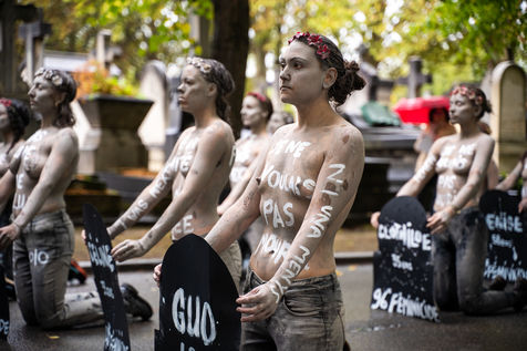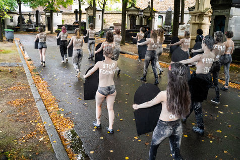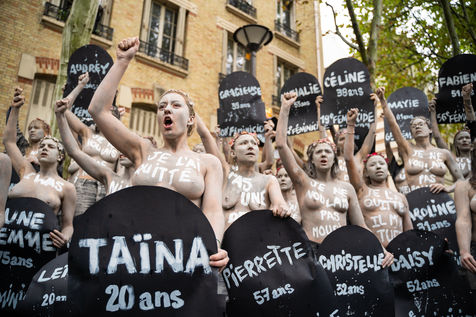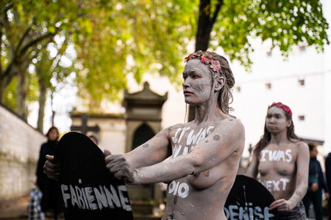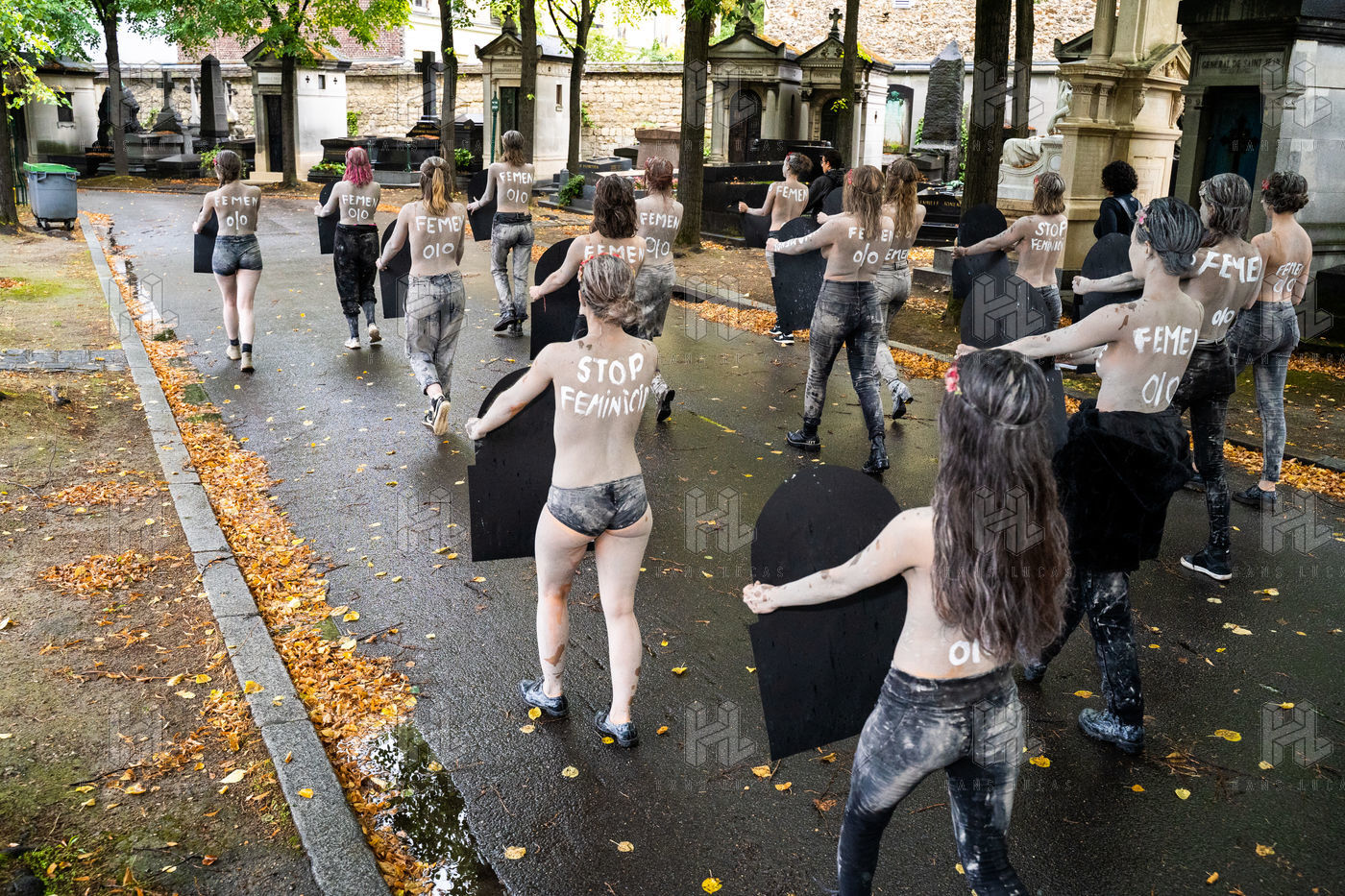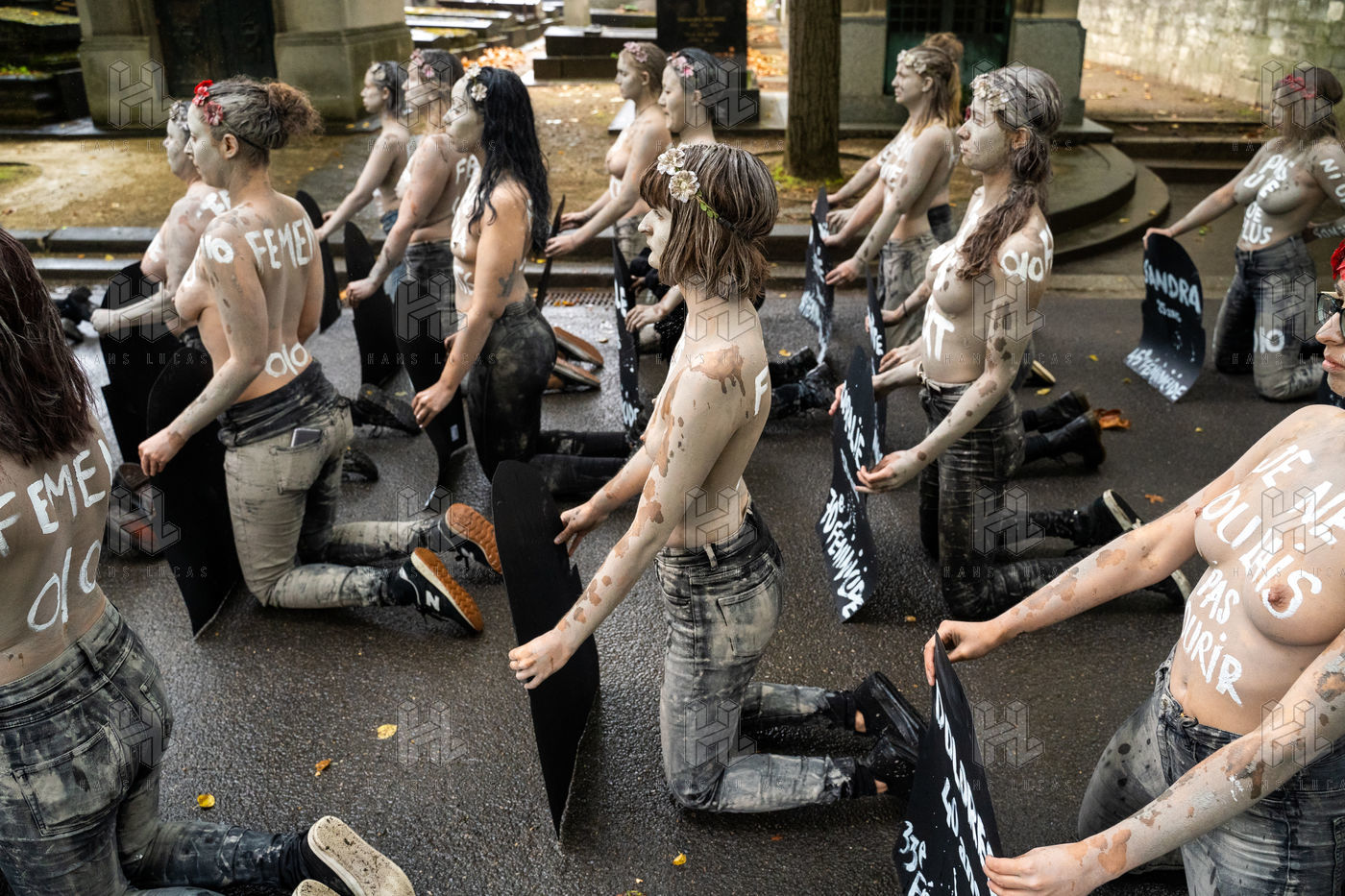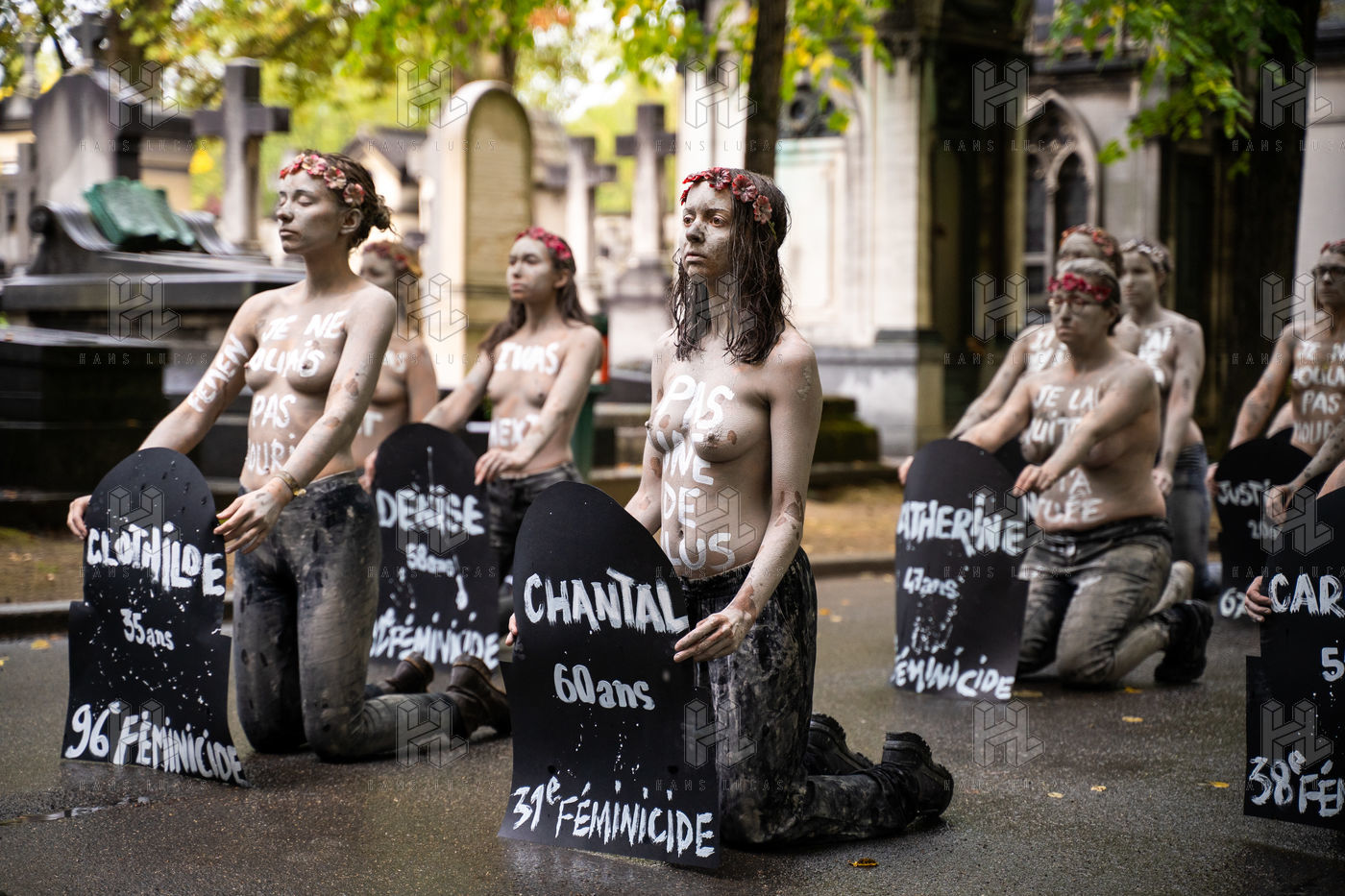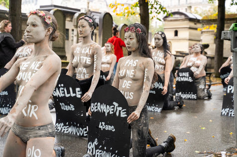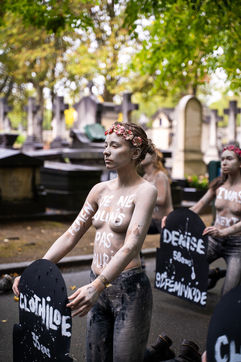 Femen's major action this Saturday. Dozens of women activists entered the Montparnasse cemetery at the end of the morning to denounce the government's inaction on feminicide and the lack of resources allocated to fight this scourge.