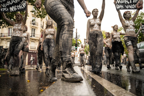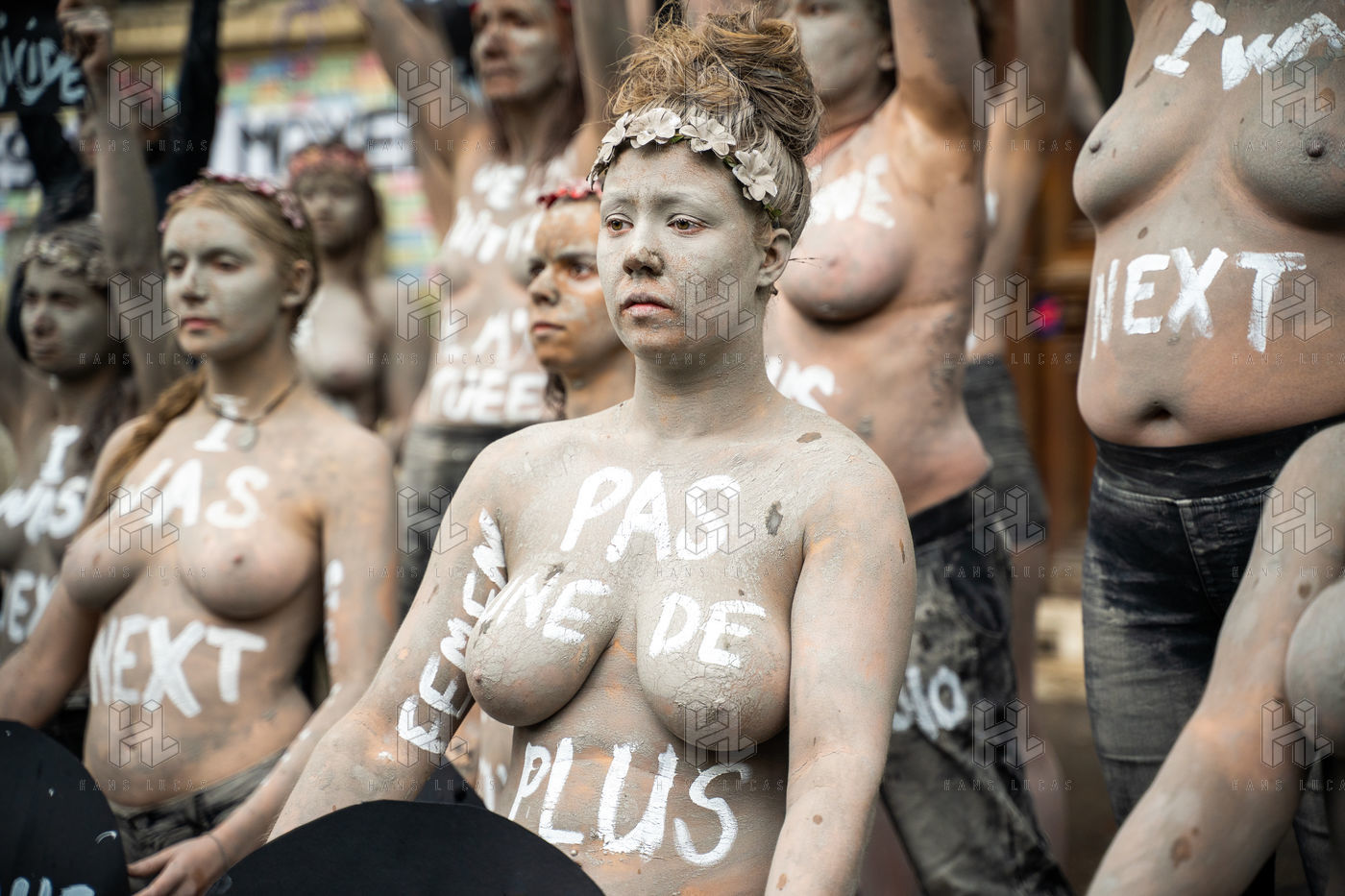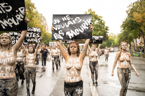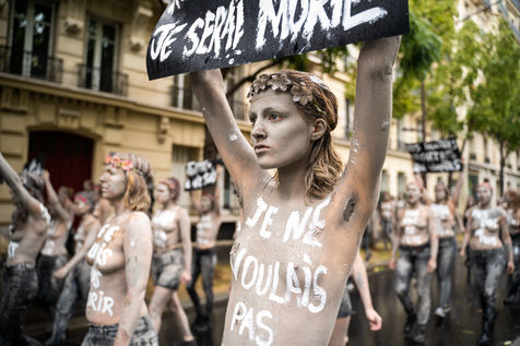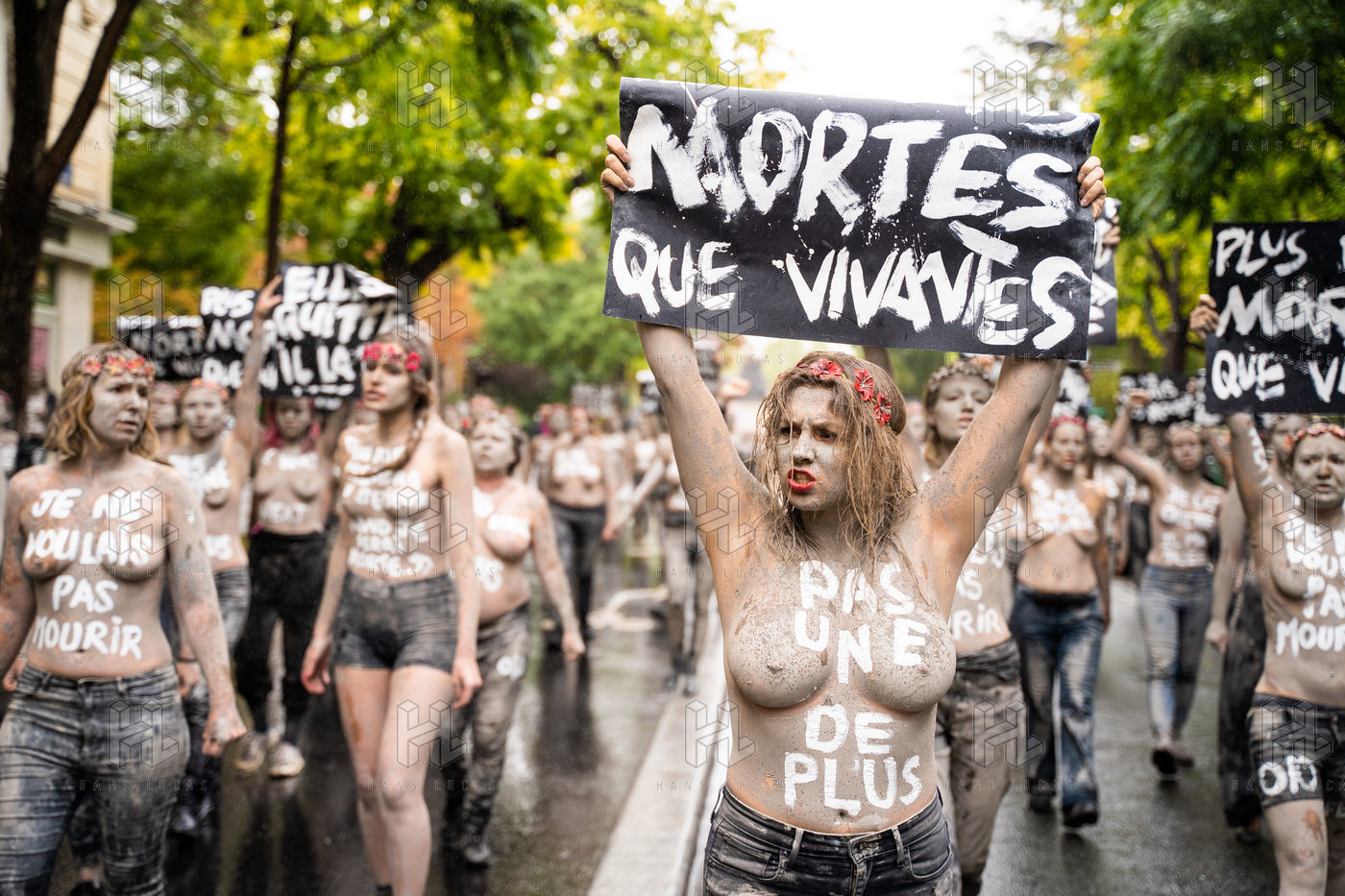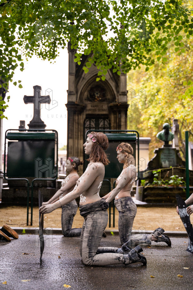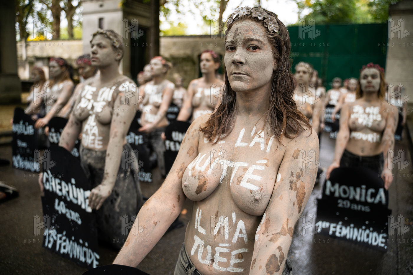 Femen's major action this Saturday. Dozens of women activists entered the Montparnasse cemetery at the end of the morning to denounce the government's inaction on feminicide and the lack of resources allocated to fight this scourge.