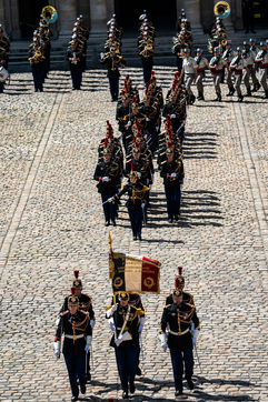 The President of the Republic, Emmanuel MACRON, presides over the taking up of arms which will take place on Thursday, July 8, 2021, in the courtyard of honor of the Hôtel national des Invalides. On this occasion, the Head of State will award decorations in honor of combatants, active military personnel or participants in the conflicts of our country's contemporary history, who have distinguished themselves recently or in the past.
