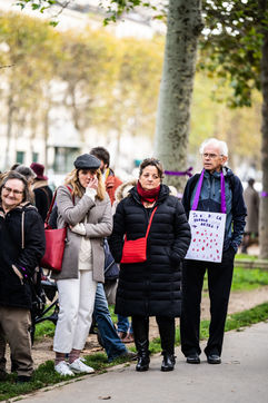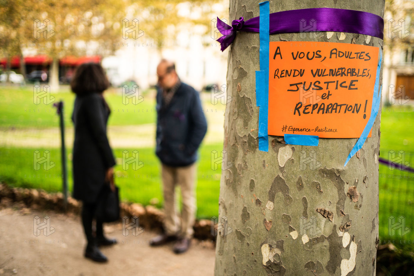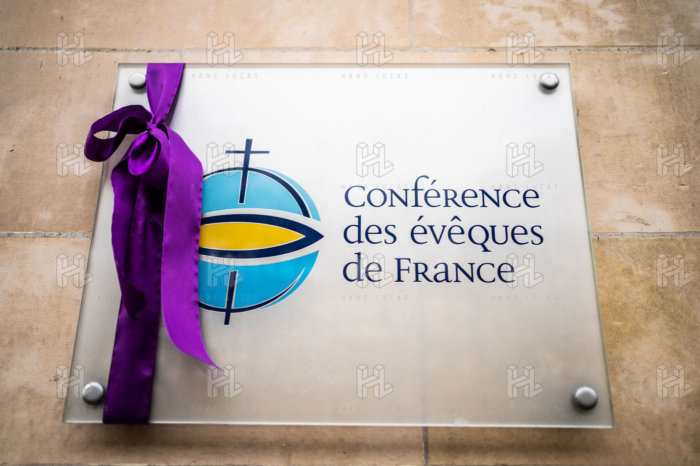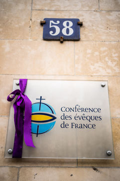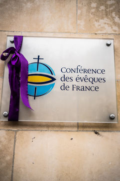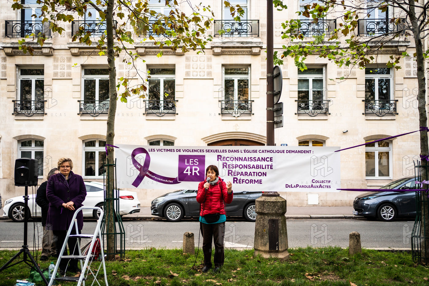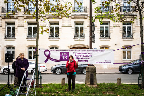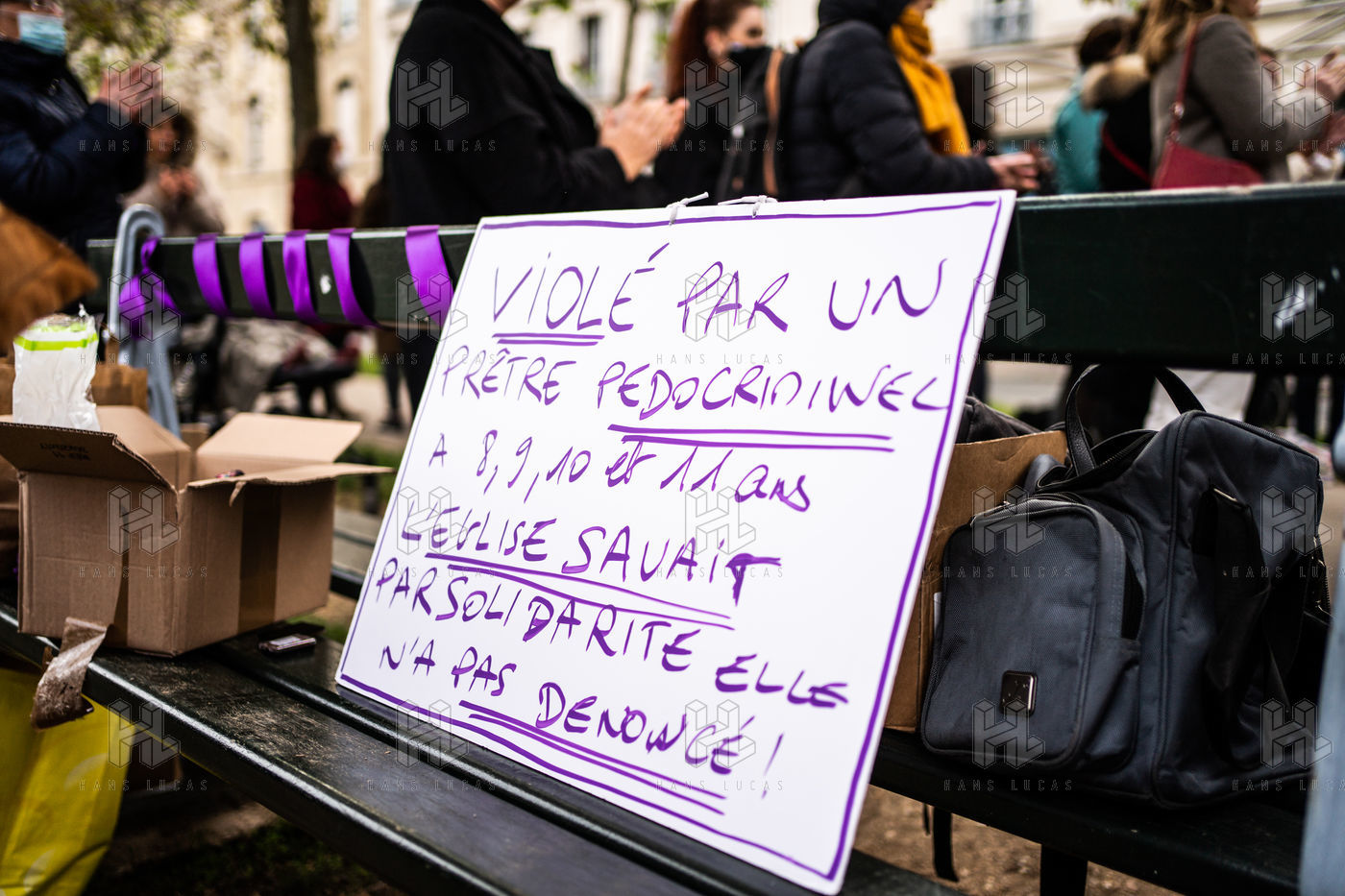 Rally in support of the victims of sexual abuse committed by Catholic clerics, in front of the house of the French Bishops' Conference.