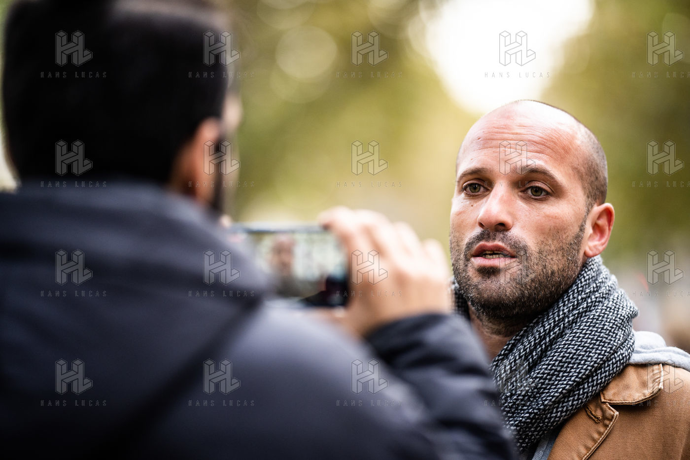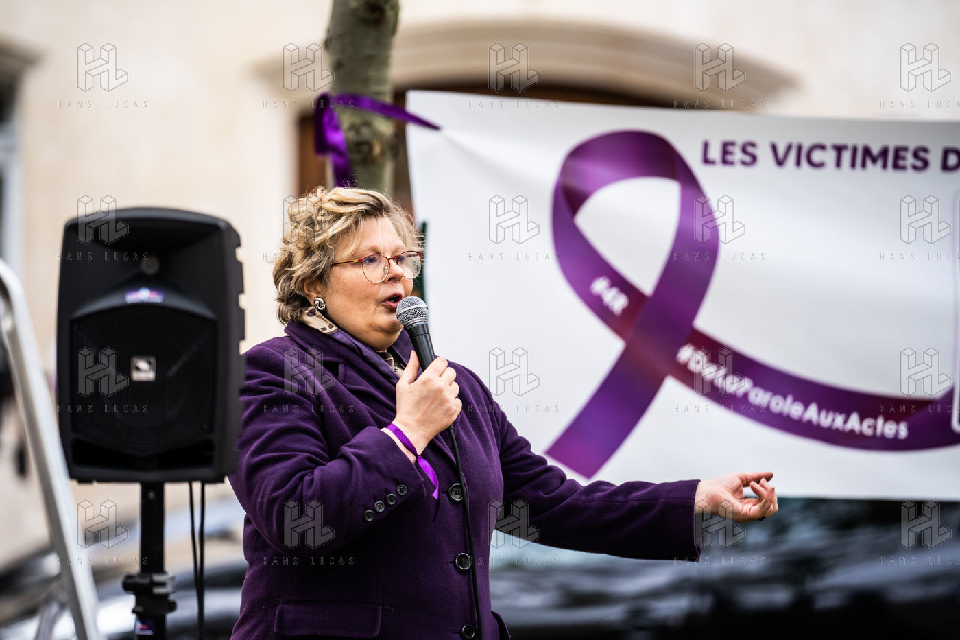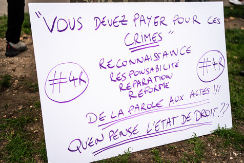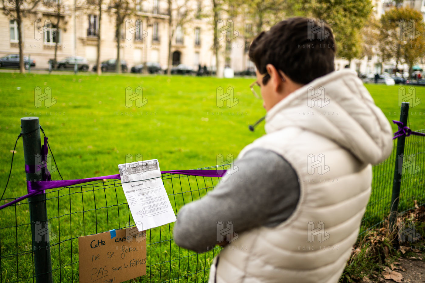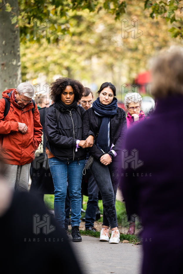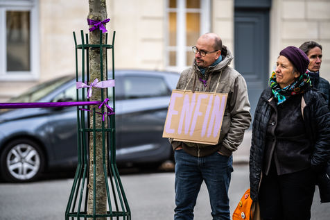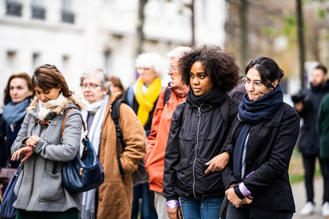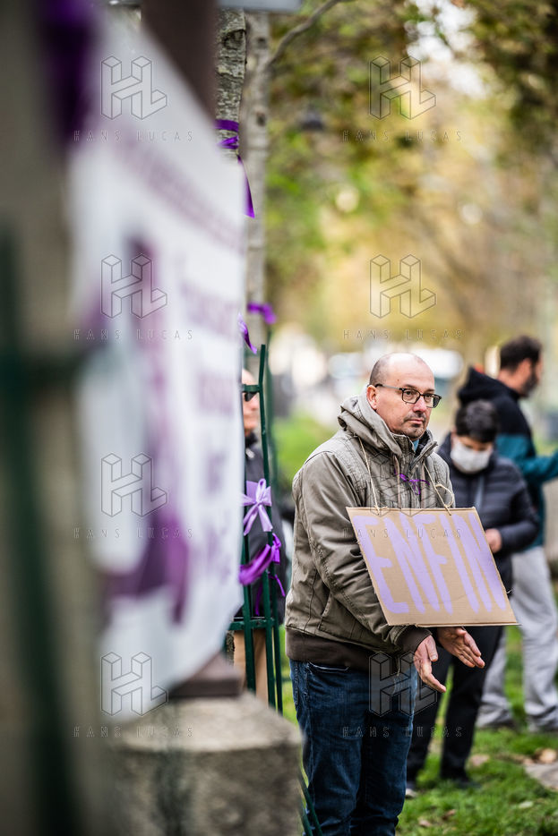 Rally in support of the victims of sexual abuse committed by Catholic clerics, in front of the house of the French Bishops' Conference.