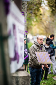 Rassemblement en soutien aux victimes d'abus sexuels commis par des religieux catholiques, devant la maison de la Conférence des évêques de France.