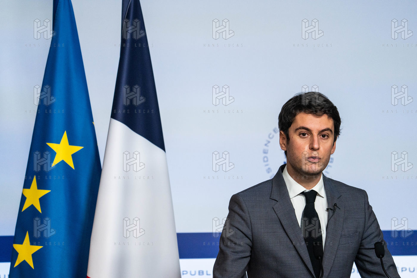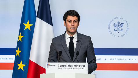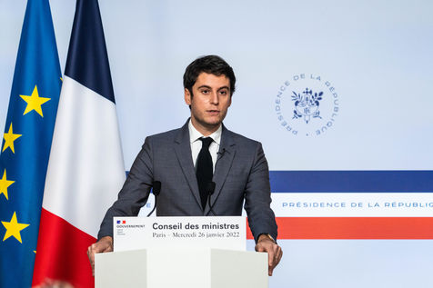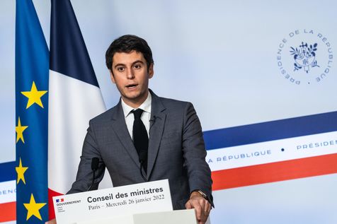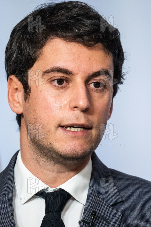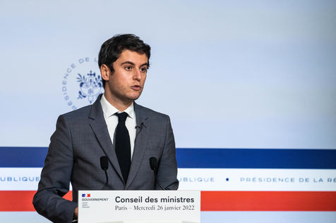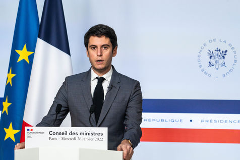 Gabriel Attal, government spokesman, reports after the council of ministers, in the spokesman's room, Paris 26 JANUARY 2021.