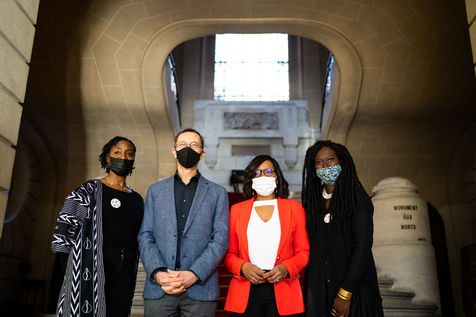 Ouverture de l'événement "10 ans de mobilisation internationale" organisé par le réseau d'associations Excision parlons-en, pour la lutte contre les mutilations génitales féminines, à la veille de la Journée internationale de tolérance zéro à l'égard des mutilations génitales féminines, à la mairie du 19e arrondissement.