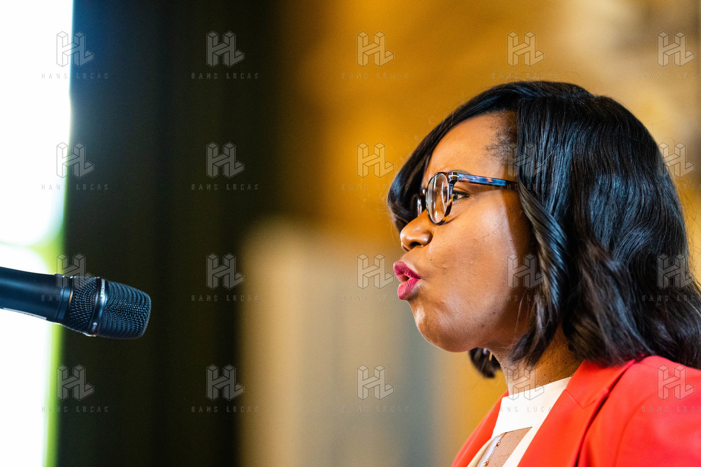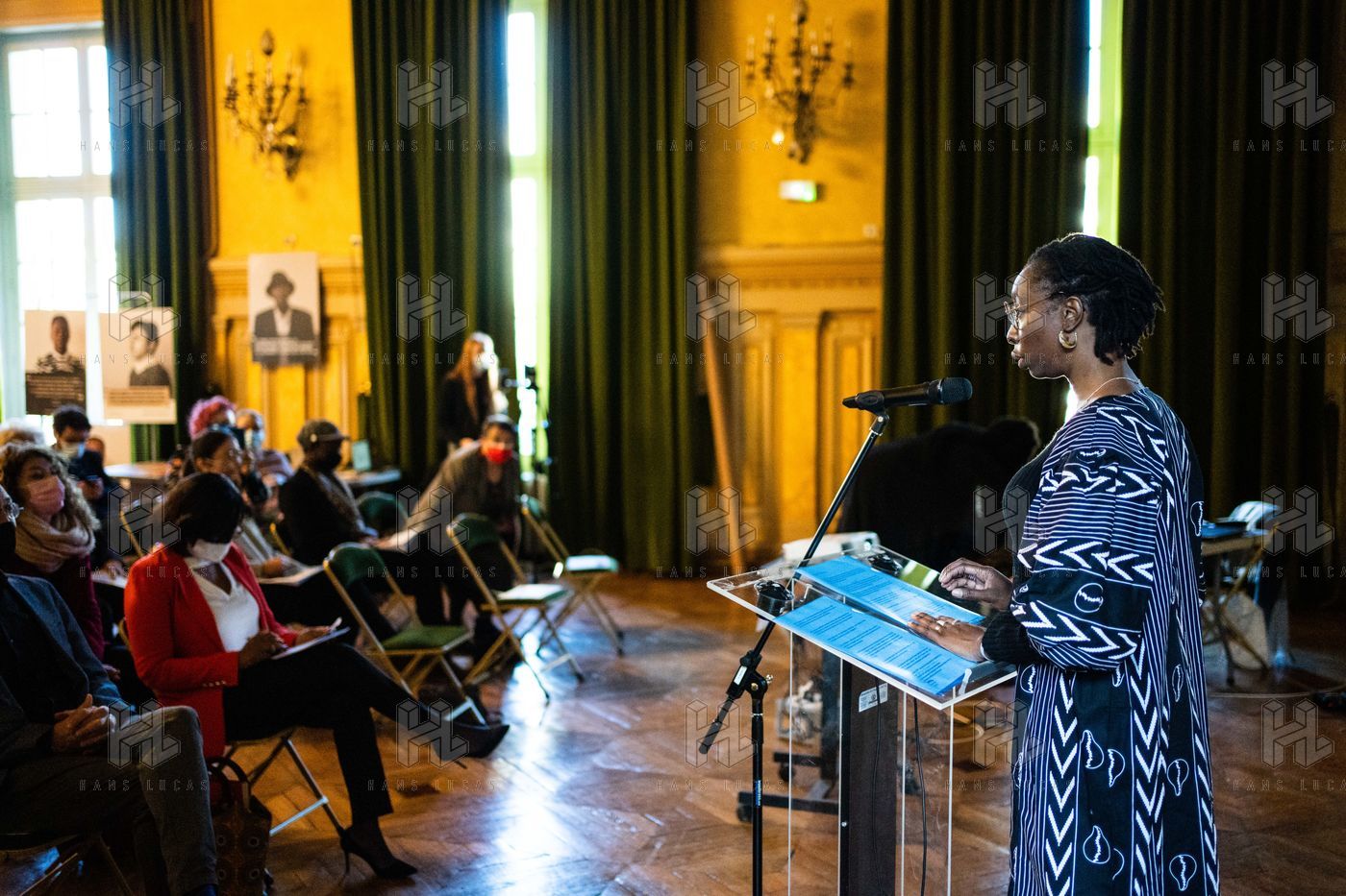 Opening of the event "10 years of international mobilization" organized by the network of associations Excision parlons-en, for the fight against female genital mutilation, on the eve of the International Day of Zero Tolerance to Female Genital Mutilation, at the city hall of the 19th district.