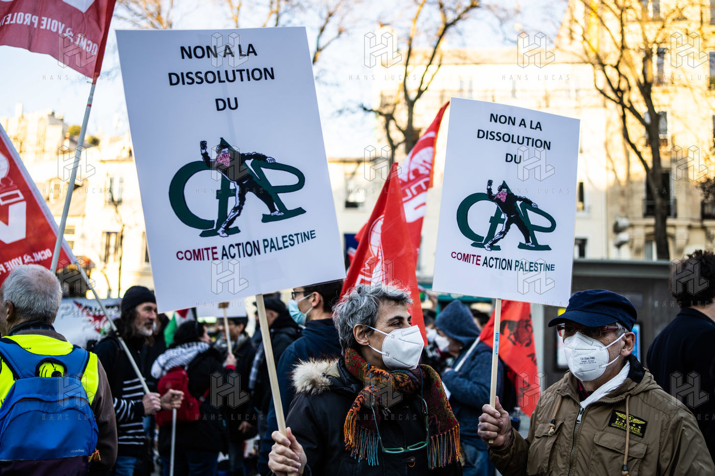 Rally against the dissolution of the Collectif Palestine vaincra and the Comite action palestine