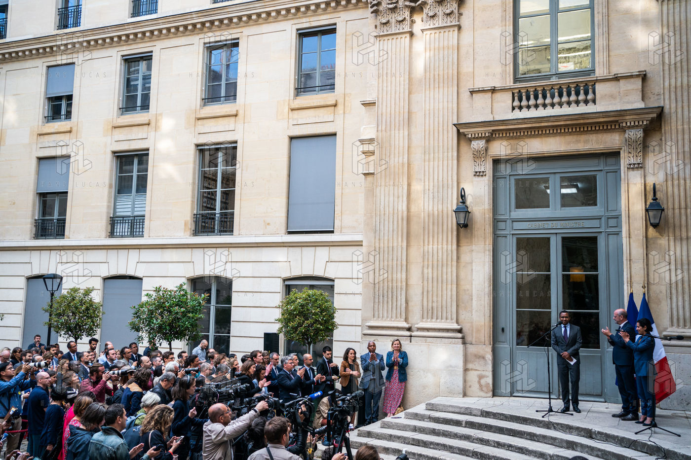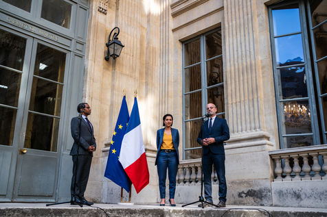Pap Ndiaye est nommé ministre de l'Éducation nationale et de la Jeunesse par le président de la République sur proposition du Premier ministre. Célébration de la passation de pouvoir entre Jean-Michel Blanquer et Pap Ndiaye au ministère de l'Éducation nationale, en présence du personnel.