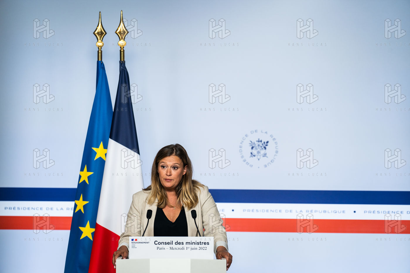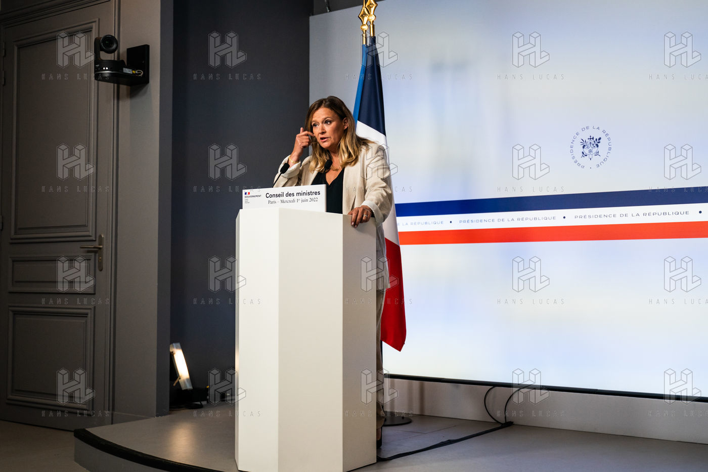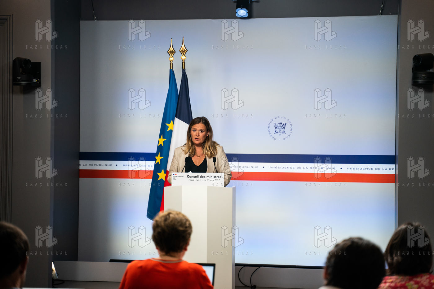 Compte-rendu à l'issue du conseil des ministres, dans la salle du porte-parole, Paris 1er juin 2022.