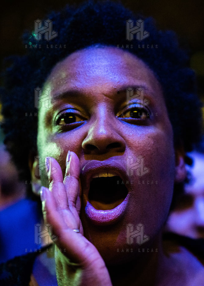Soirée électorale de la NUPES, la Nouvelle Union Populaire Écologique et Sociale qui rassemble les forces de gauche pour les élections législatives de 2022. Soirée électorale du second tour des élections législatives qui se déroule à l'Elysee Montmartre, boulevard Marguerite de Rochecouart à Paris.