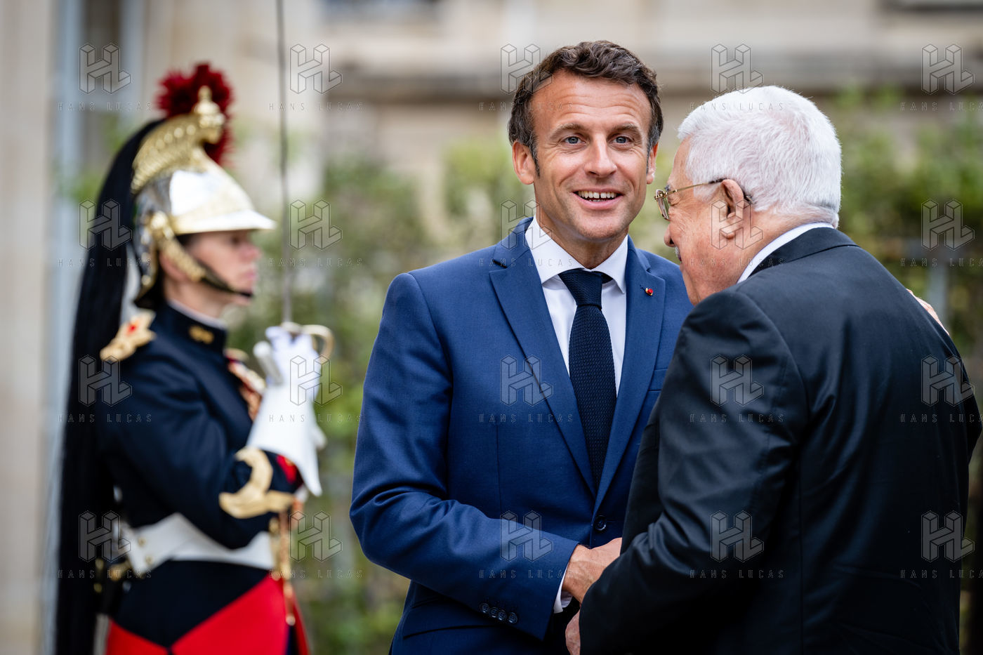 Déjeuner de travail entre le président de la République française et le président de l'Autorité palestinienne au Palais de l'Elysée.