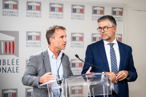Point de presse du groupe Libertés, Indépendants, Outre-Mer et Territoires, LIOT, dans la salle de conférence de l'Assemblée nationale.