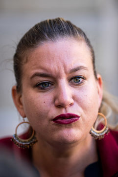 Entretiens entre la première ministre, et les présidents de groupes parlementaires de l'Assemblée nationale et du Sénat à Matignon. Entretien avec Mathilde Panot, présidente du groupe La France insoumise, Nouvelle Union Populaire écologique et sociale, à l'Assemblée nationale.
