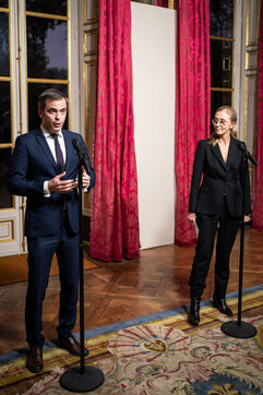 Council for Protected Children and Inter-ministerial Committee on Childhood at the Hôtel de Matignon. Press briefing by Olivier Veran, Minister Delegate to the Prime Minister, in charge of Democratic Renewal, Government Spokesperson, and Charlotte Caubel, Secretary of State to the Prime Minister, in charge of Children, at the Hôtel de Matignon.