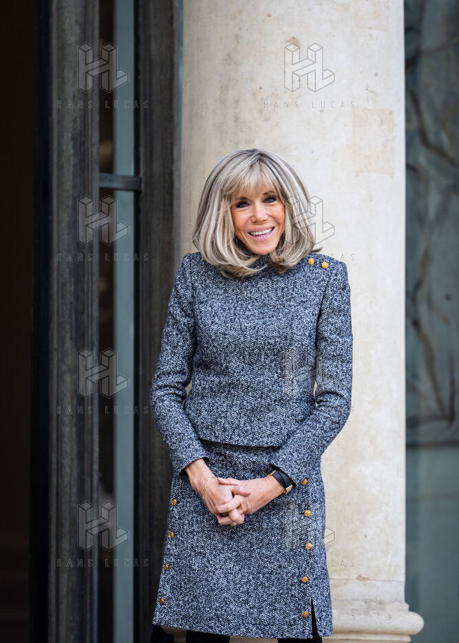 Réception d'Olena Zelenska, productrice de télévision et actuelle première dame d'Ukraine, épouse du président Volodymyr Zelensky, reçue par Brigitte Macron, enseignante, première dame, épouse du président de la République française, au palais de l'Élysée.