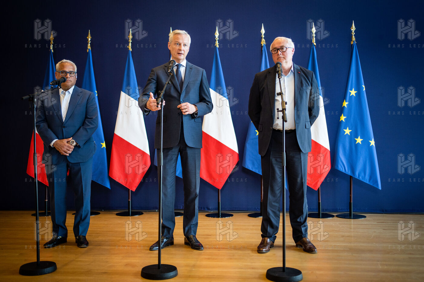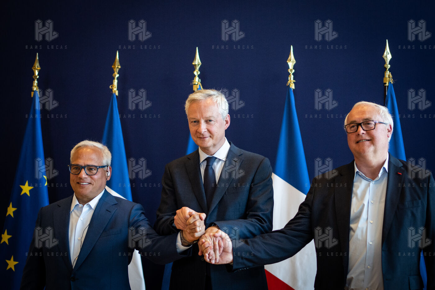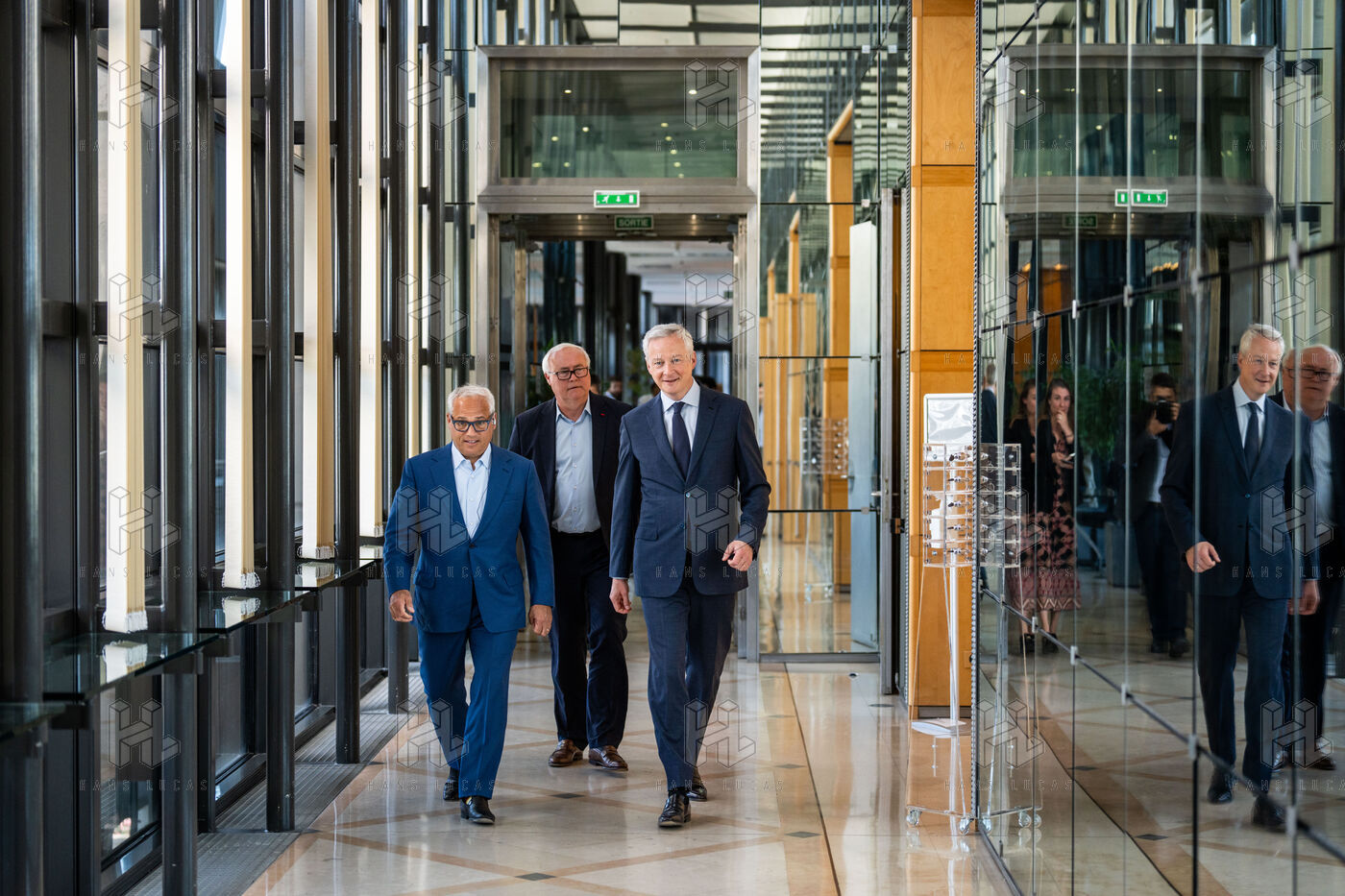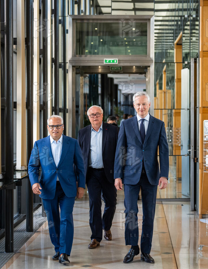 Signing of the State aid contract for the STMicro and GF project, following the meeting between the Minister for the Economy and the Chairman and CEO of GF and the CEO of STMicroelectronics, as part of the project to build a new semiconductor plant in Crolles. A total investment of almost 7.5 billion euros, which will reveal the amount of state aid to the Ministry of the Economy and Finance in Barcy.