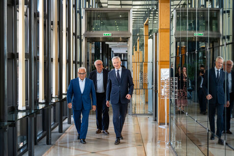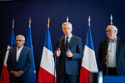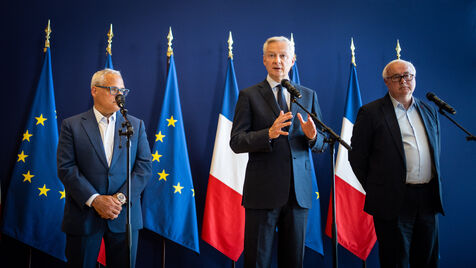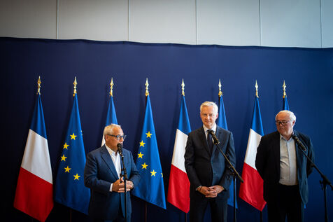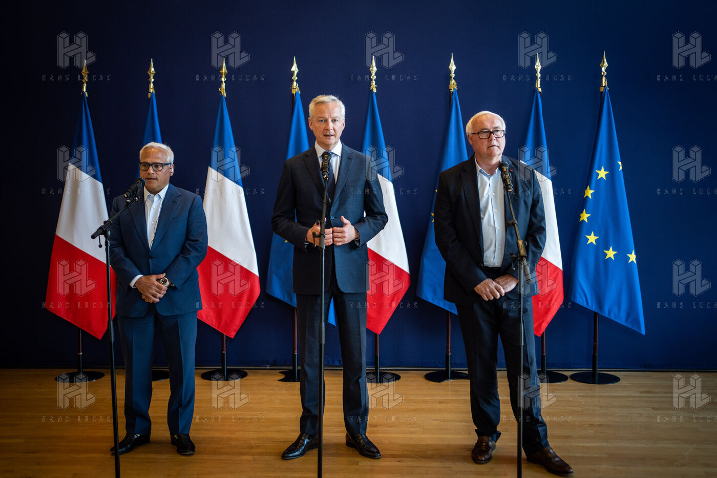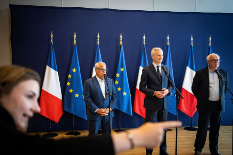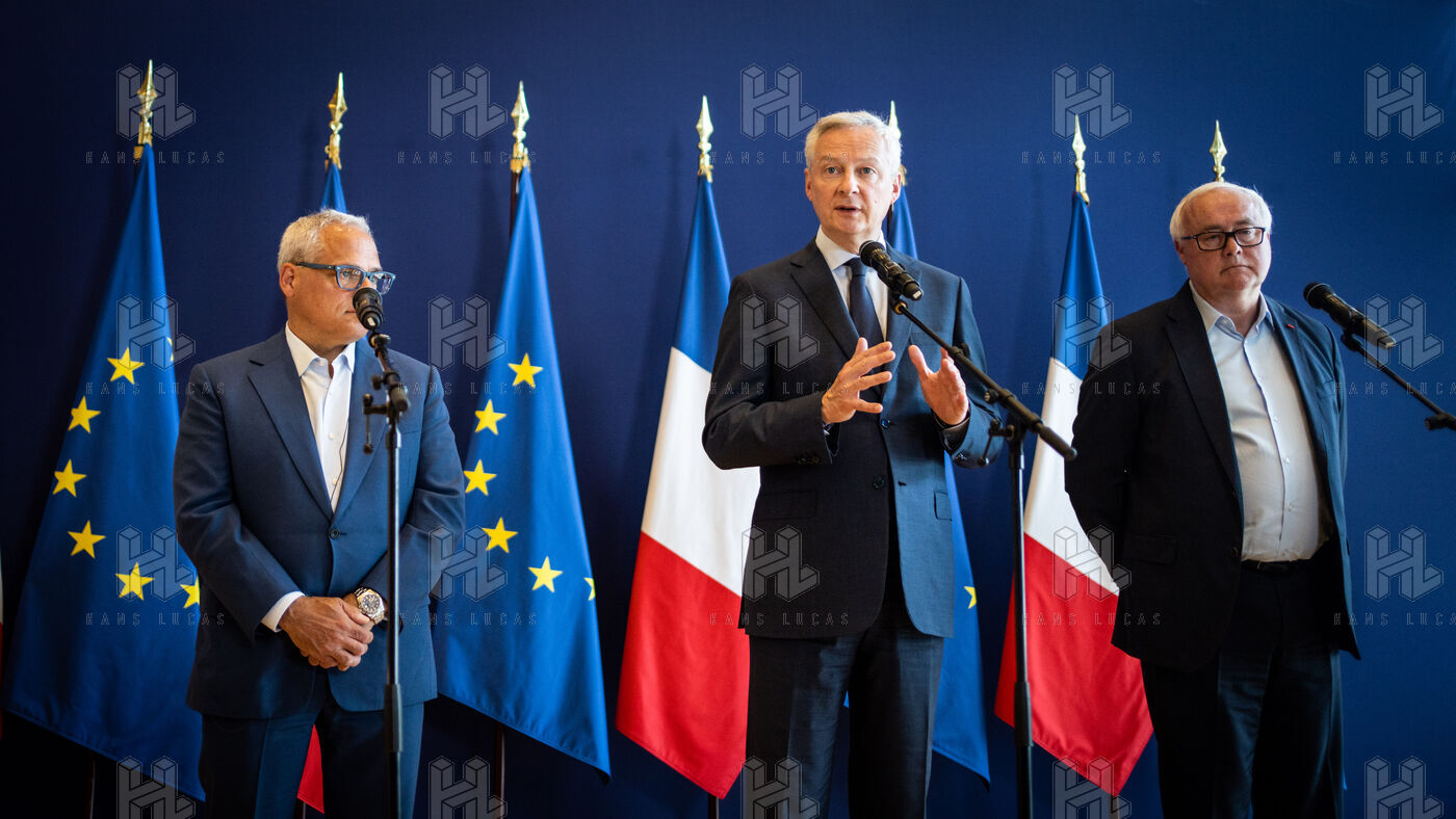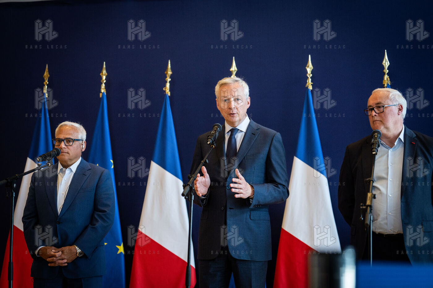 Signing of the State aid contract for the STMicro and GF project, following the meeting between the Minister for the Economy and the Chairman and CEO of GF and the CEO of STMicroelectronics, as part of the project to build a new semiconductor plant in Crolles. A total investment of almost 7.5 billion euros, which will reveal the amount of state aid to the Ministry of the Economy and Finance in Barcy.