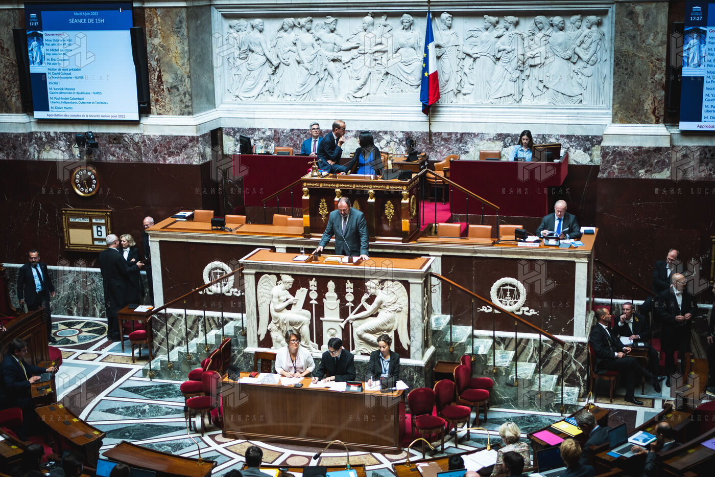 Public session to approve the social security accounts for 2022, at the French National Assembly.