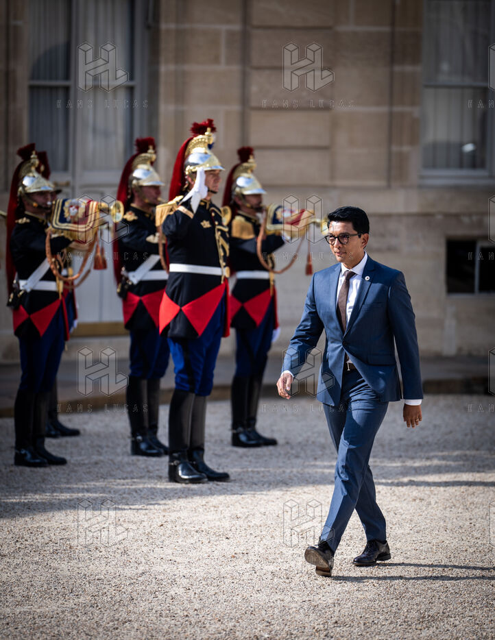 Meeting between Emmanuel Macron, President of the French Republic, and Andry Rajoelina, President of the Republic of Madagascar, at the Elysée Palace.