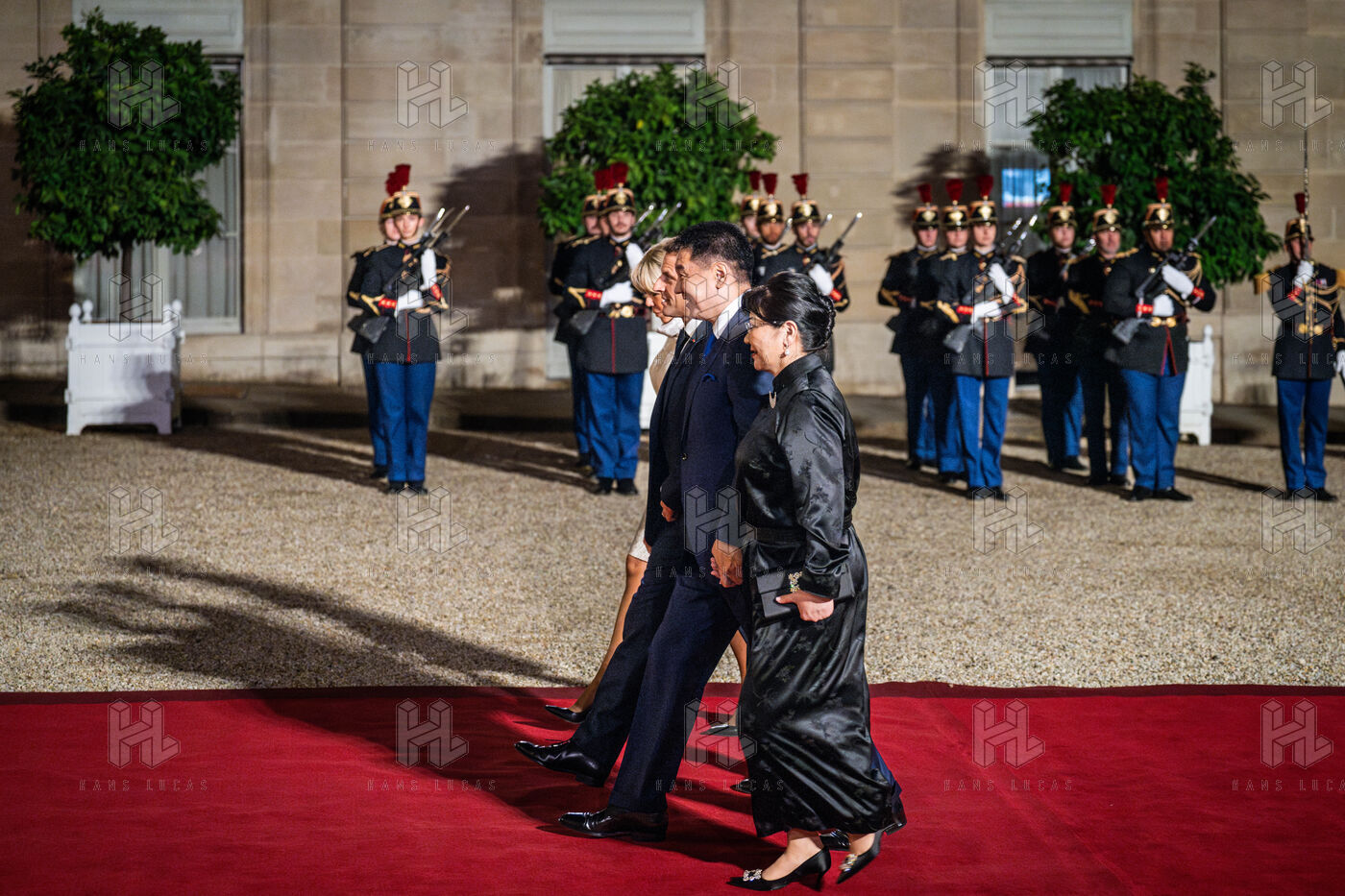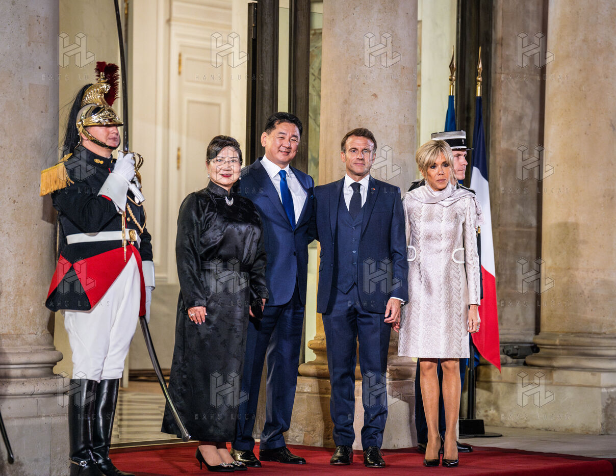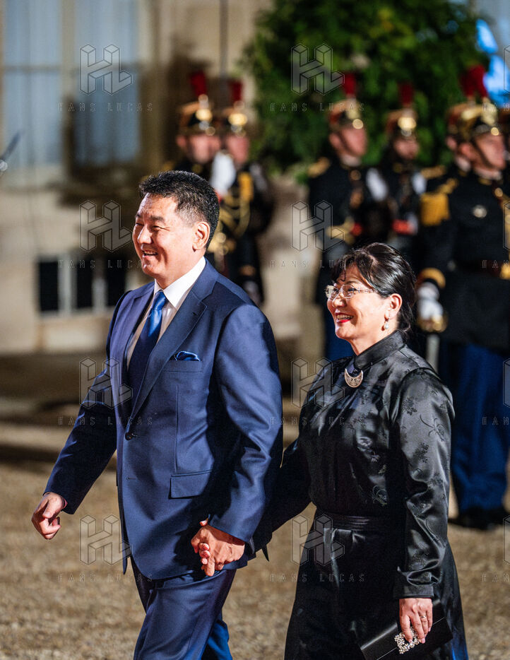 Dîner d'État entre le président français et le président de l'État de Mongolie au palais de l'Élysée.