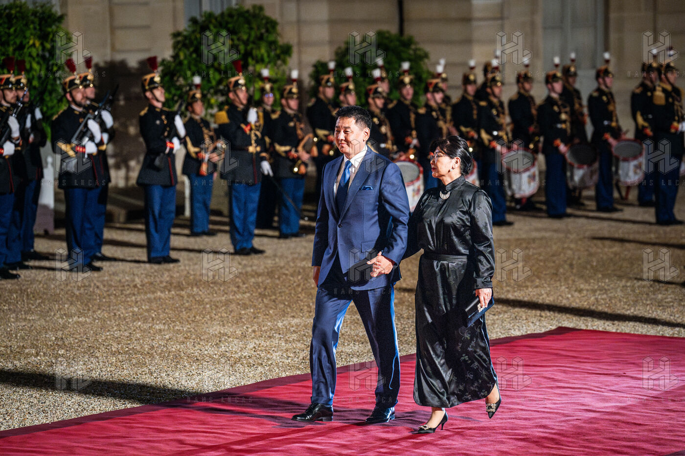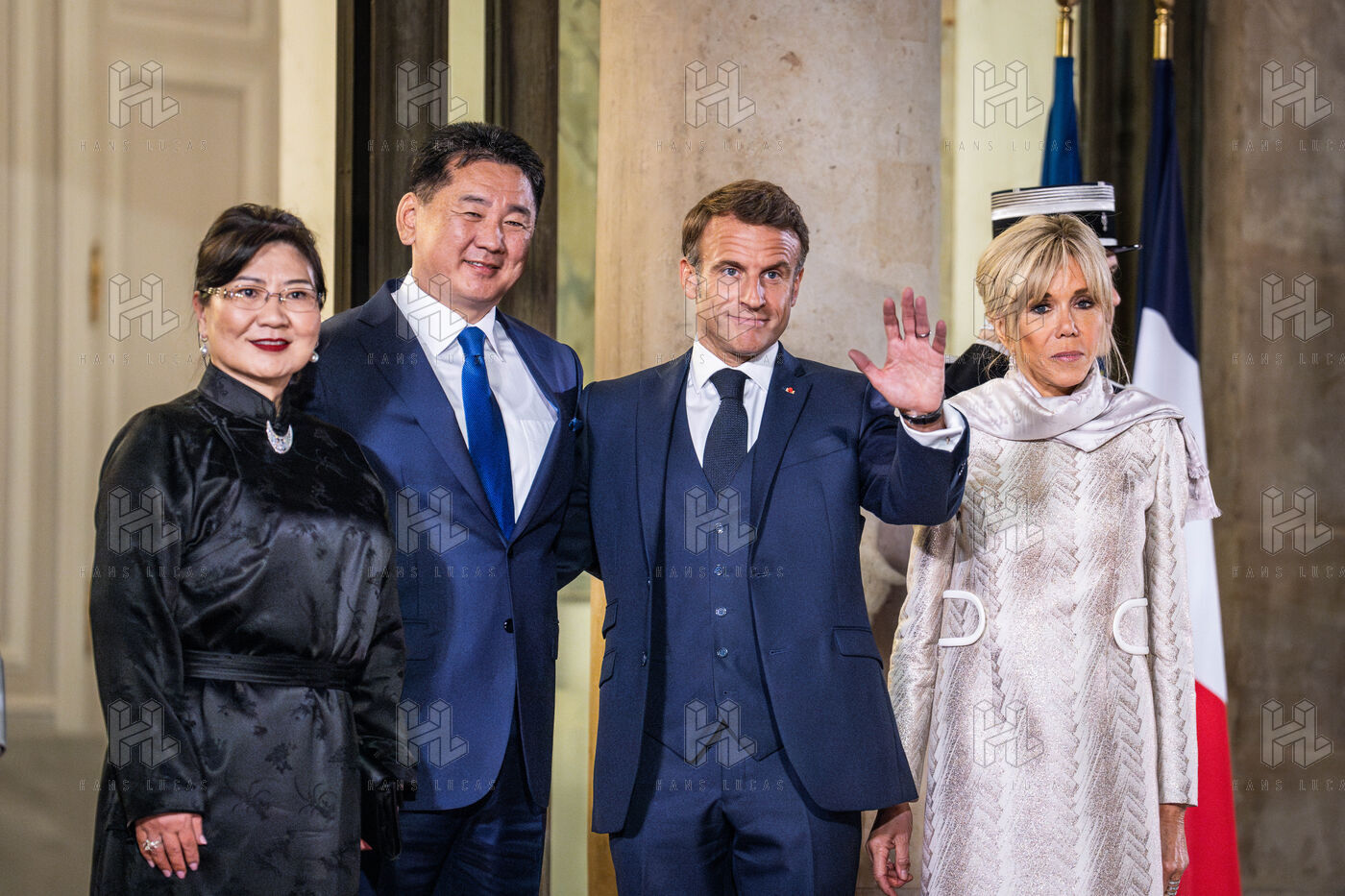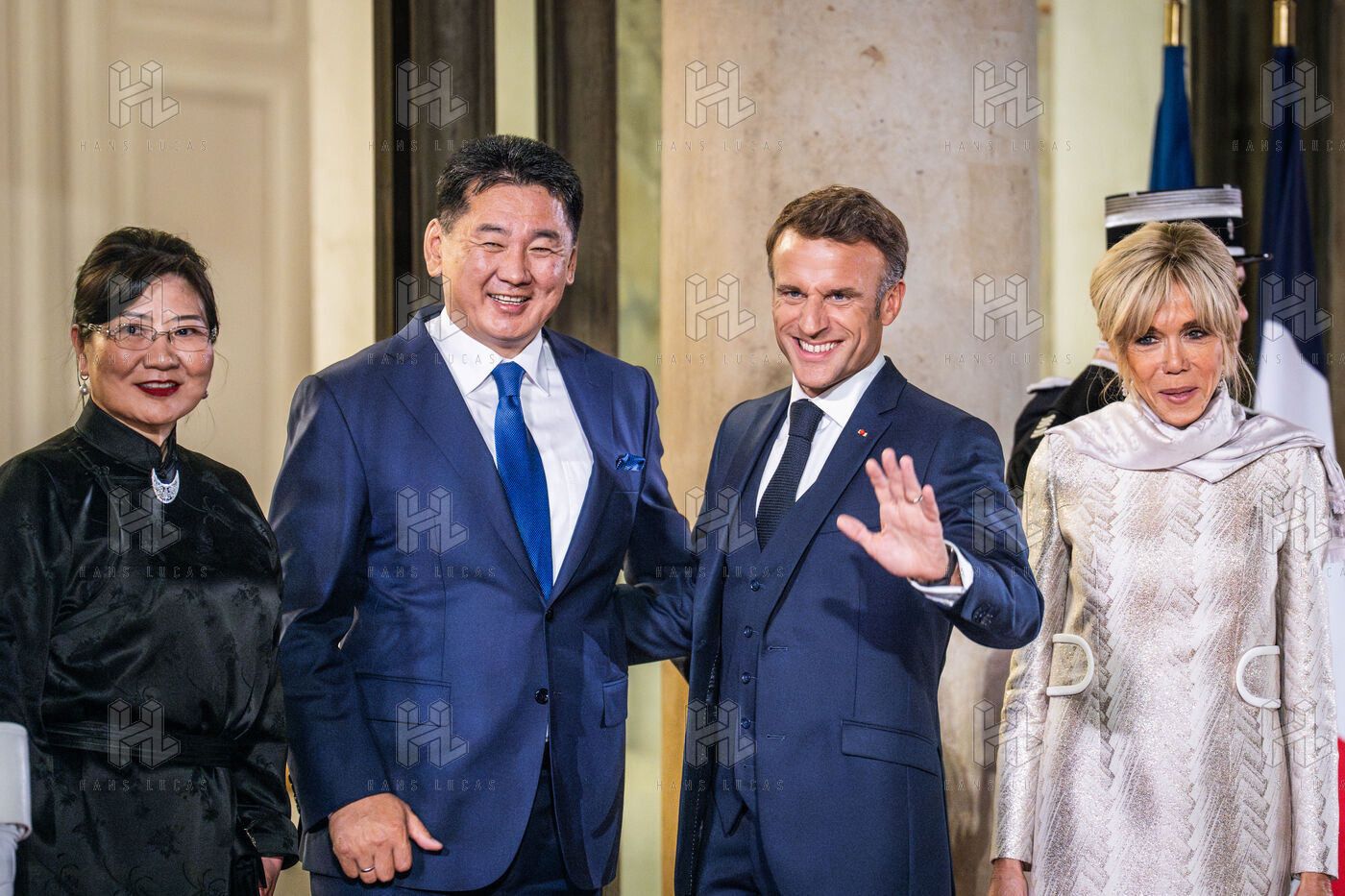 Dîner d'État entre le président français et le président de l'État de Mongolie au palais de l'Élysée.