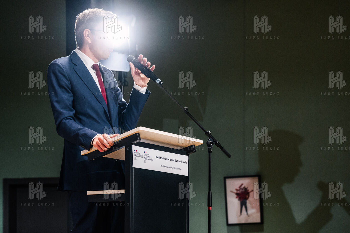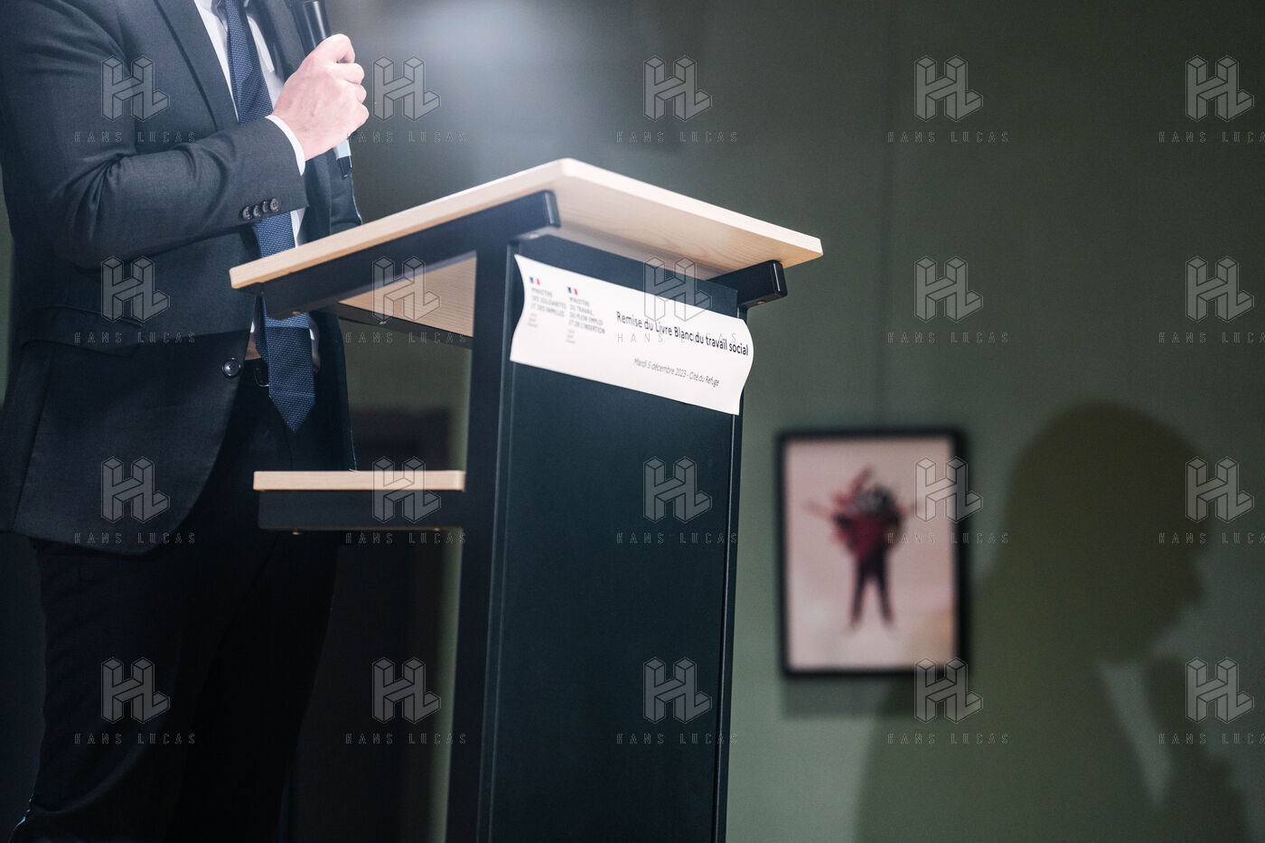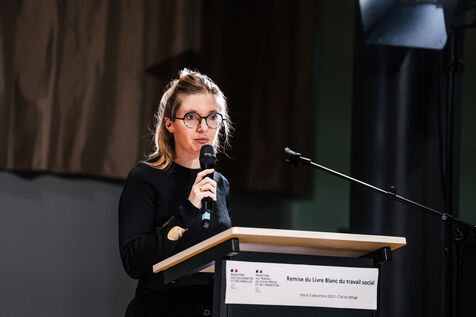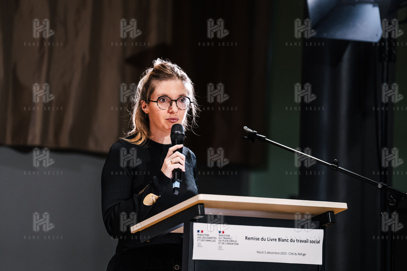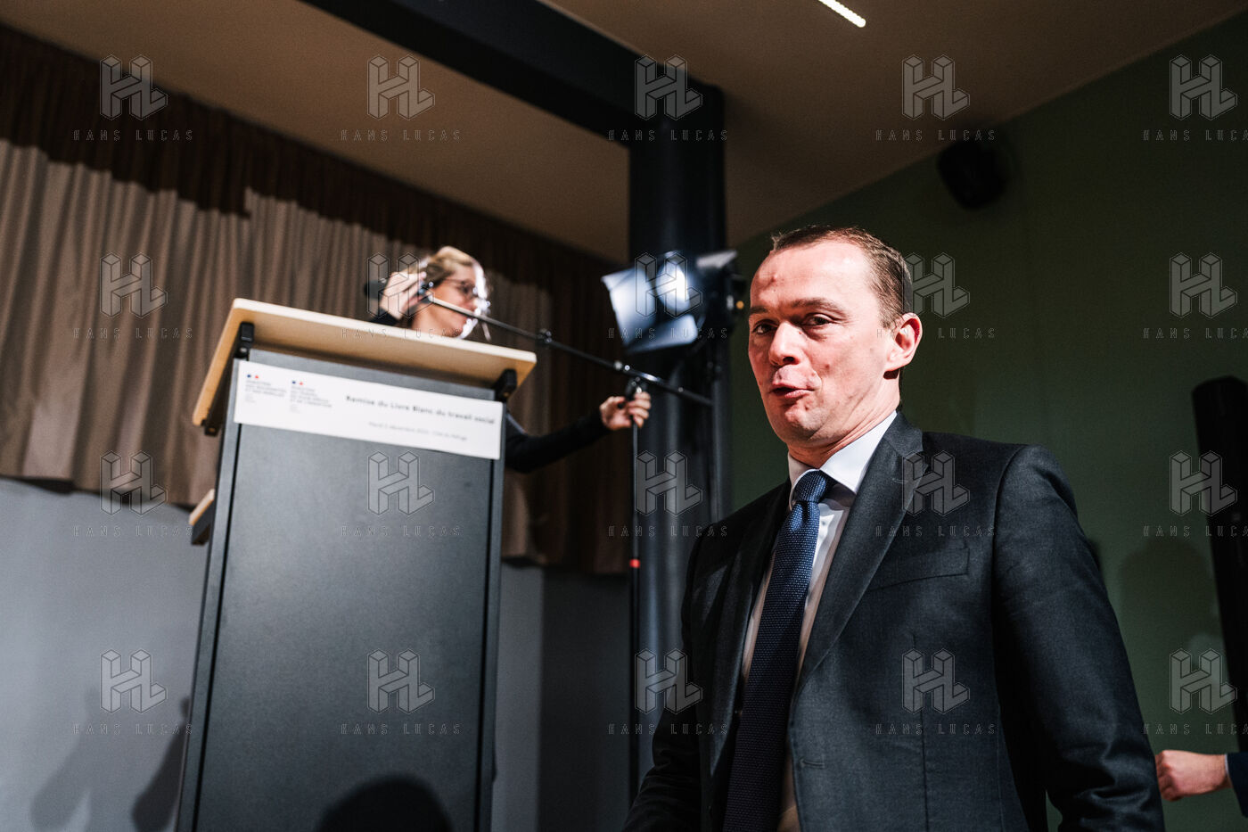 Ceremony at the Cité de Refuge de l'Armée du Salut to present the White Paper of the Haut Conseil du Travail Social (HCTS) to government ministers. The book is the result of in-depth work by HCTS national groups, local social work and social development committees, and contributions from various organizations.