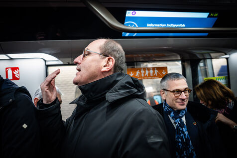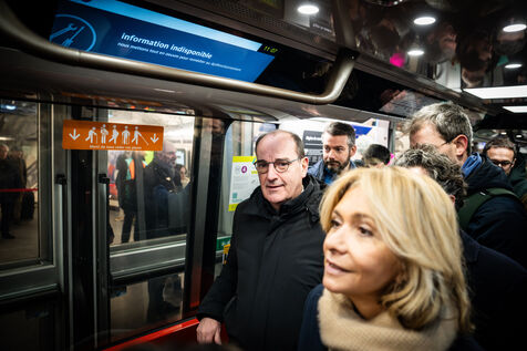 Cérémonie d'inauguration de l'automatisation complète de la ligne 4 du métro parisien à la station Denfert-Rochereau.