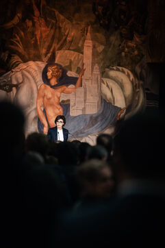 Greetings from Rachida Dati, Minister of Culture, to cultural players and the press at the Palais de la Porte Doré, Musée national de l'histoire de l'immigration, Aquarium tropical.
