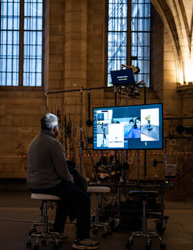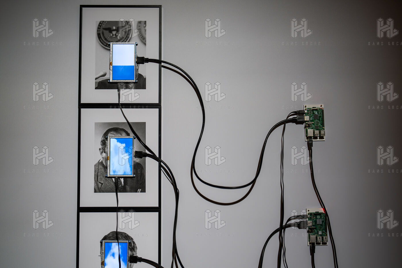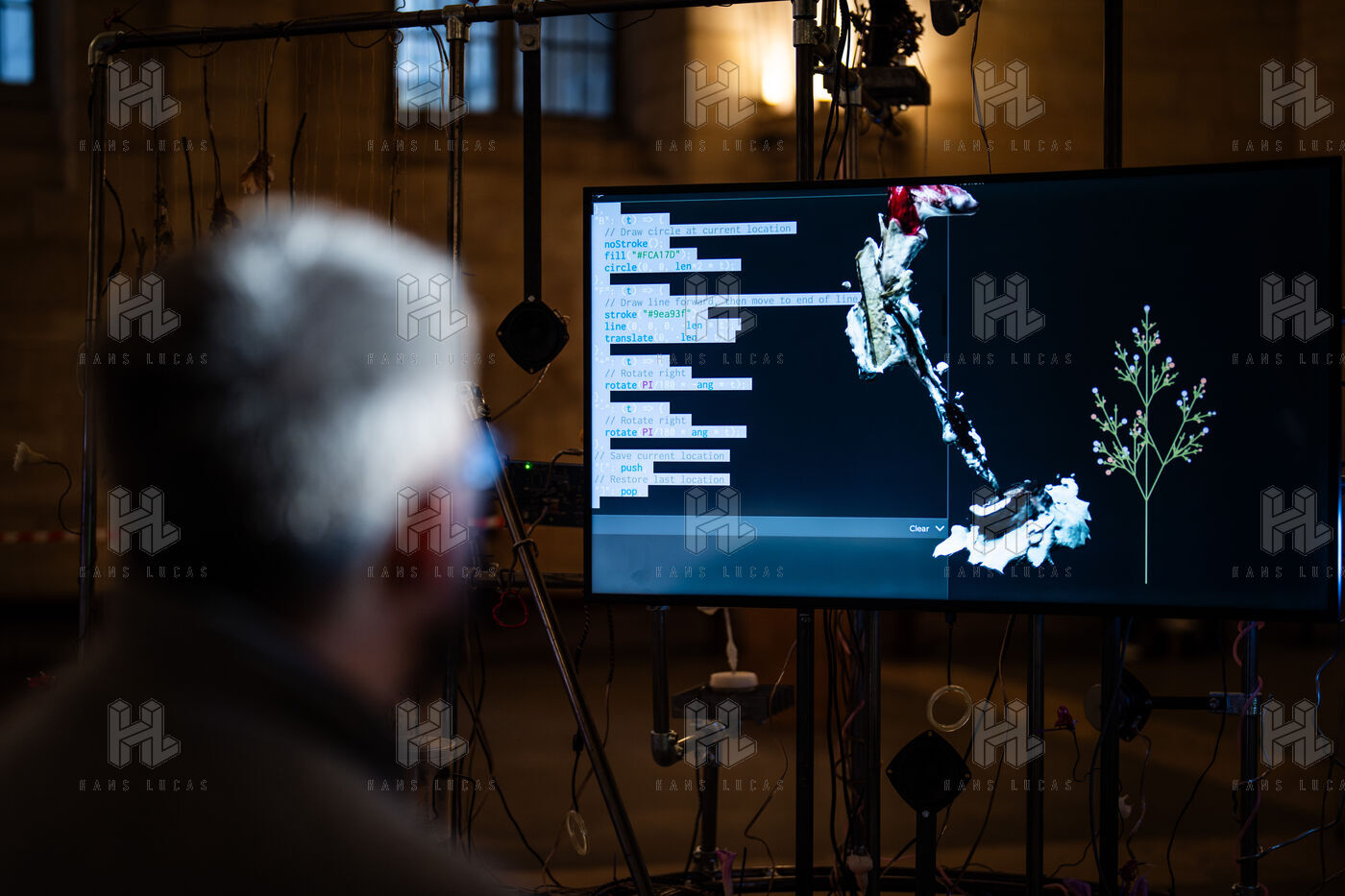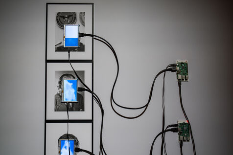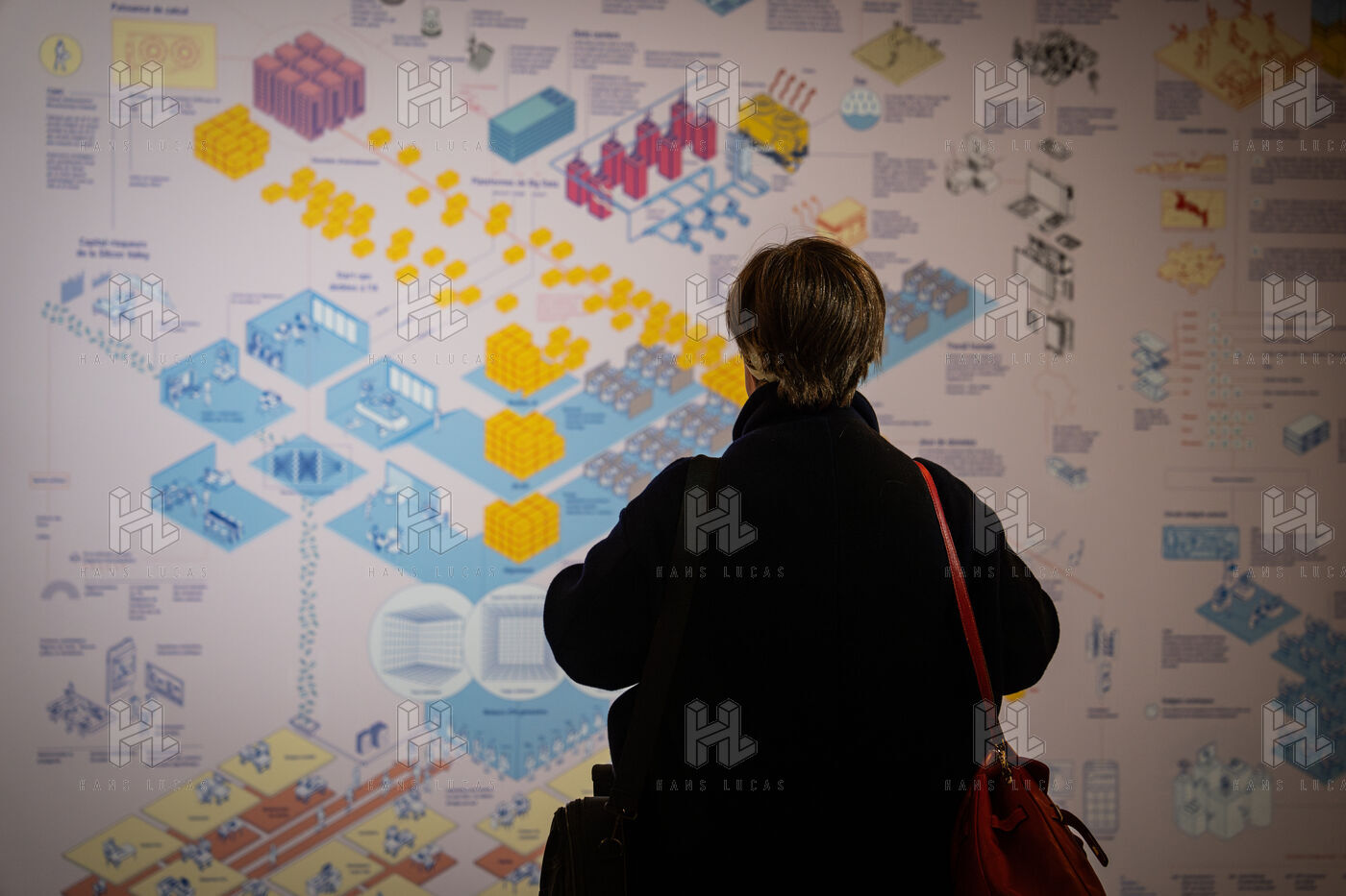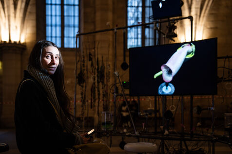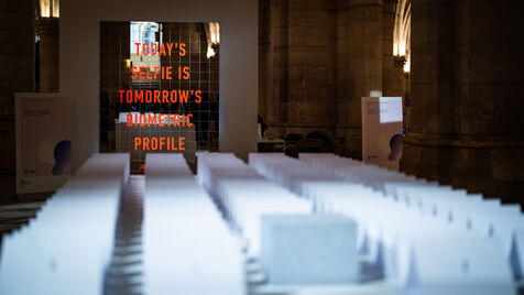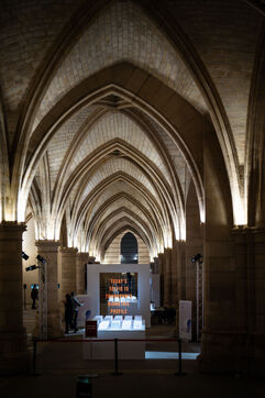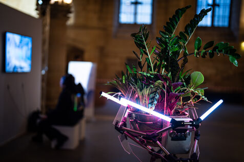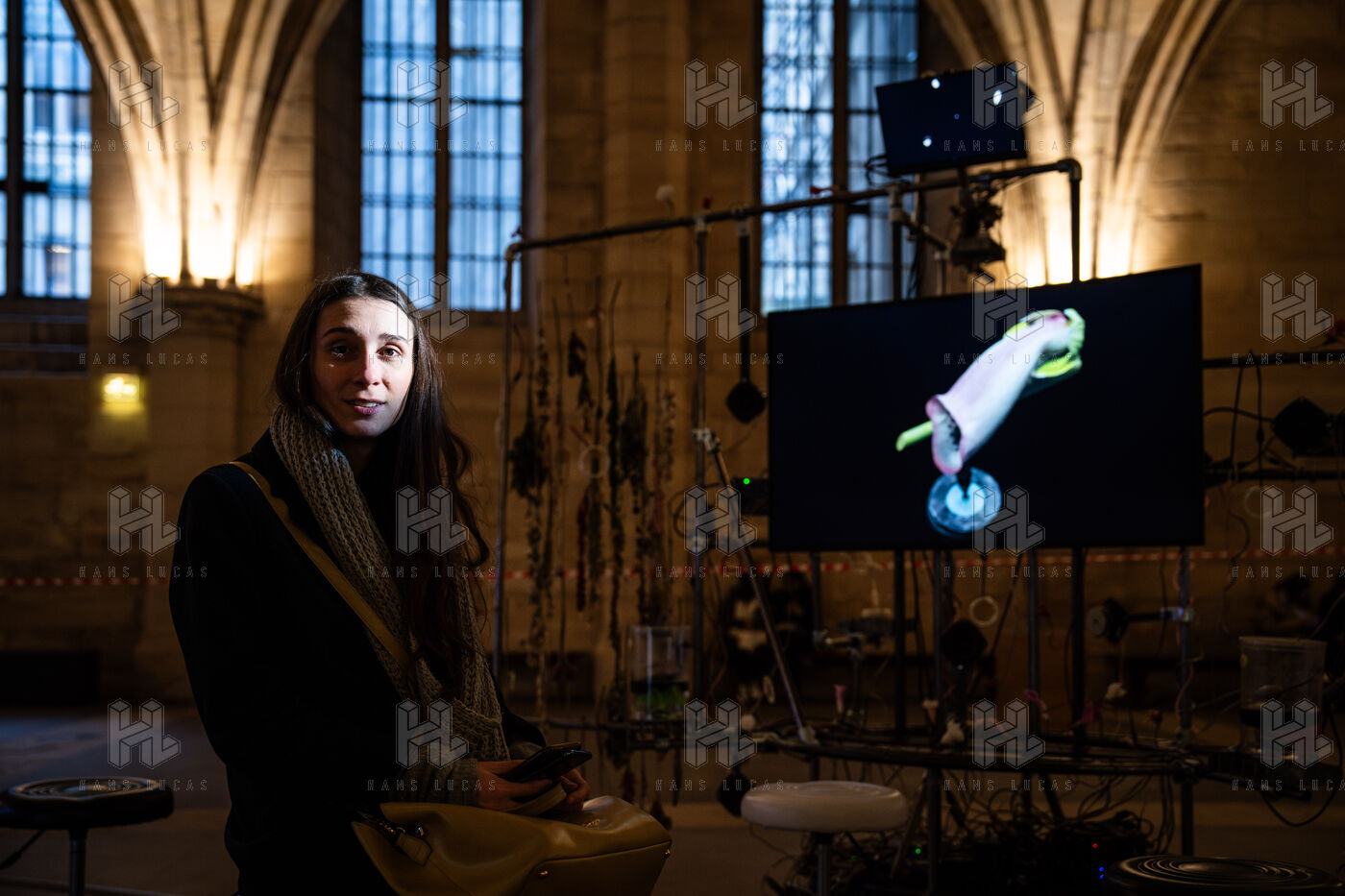 Exposition "Machina Sapiens", qui propose une vingtaine d'œuvres d'artistes français et internationaux explorant les enjeux de l'IA générative et son impact sur la société, à la Conciergerie de Paris.