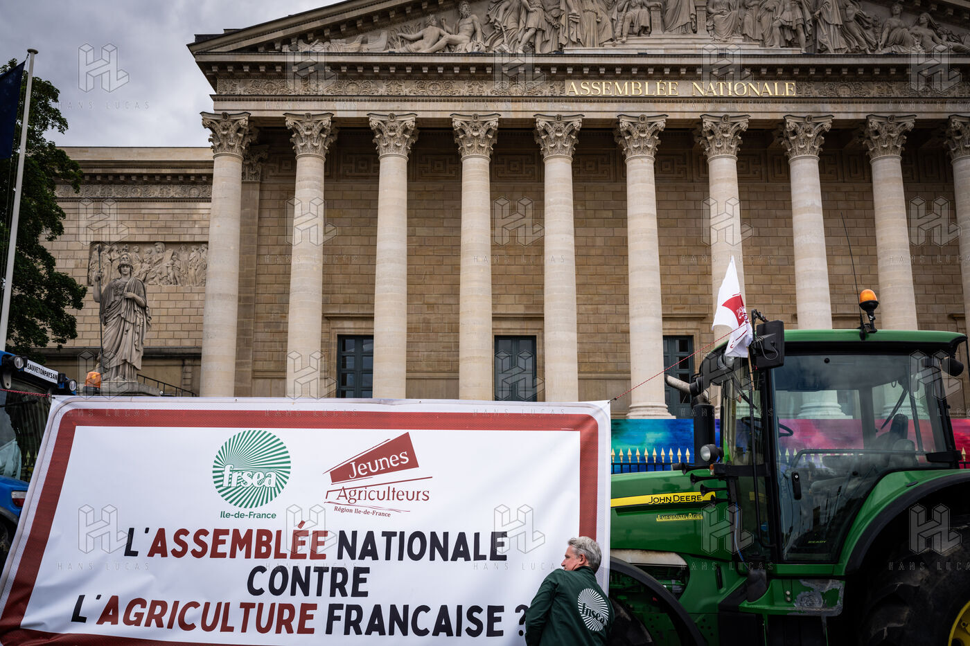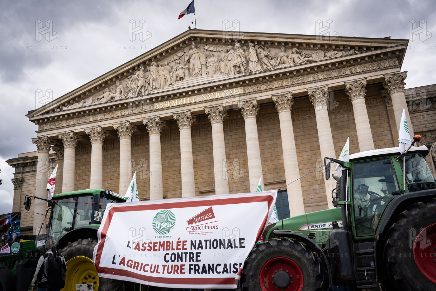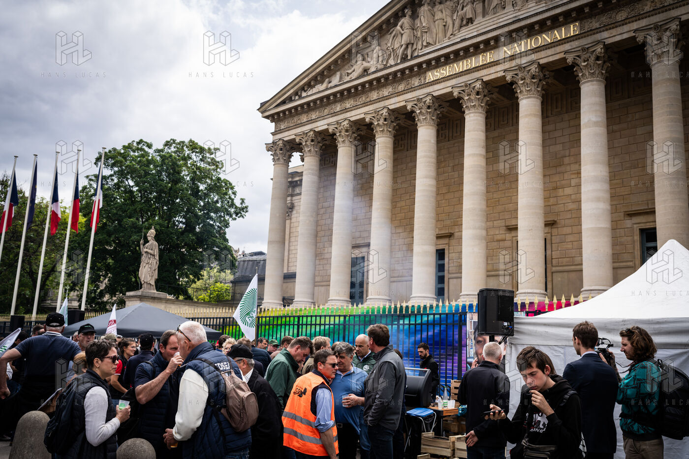 Manifestation d'agriculteurs devant l'Assemblée nationale à Paris.