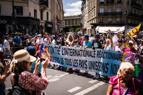 Marche des Fiertés à Paris contre l’internationale réactionnaire, pour dénoncer les violences, revendiquer l’égalité des droits, exiger des politiques publiques inclusives et rendre visibles celles et ceux que la société tente de faire taire.