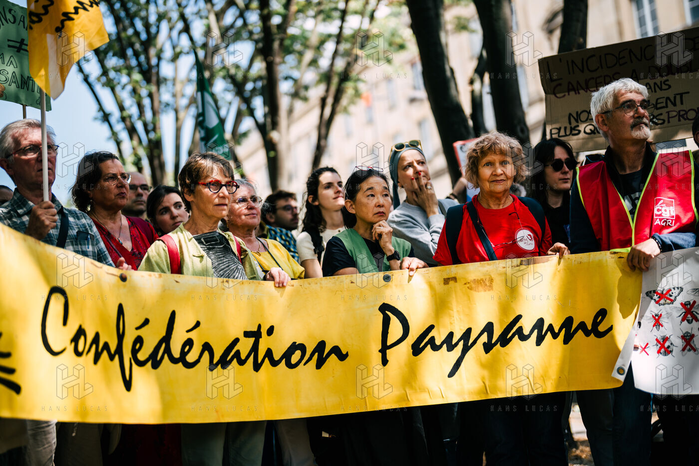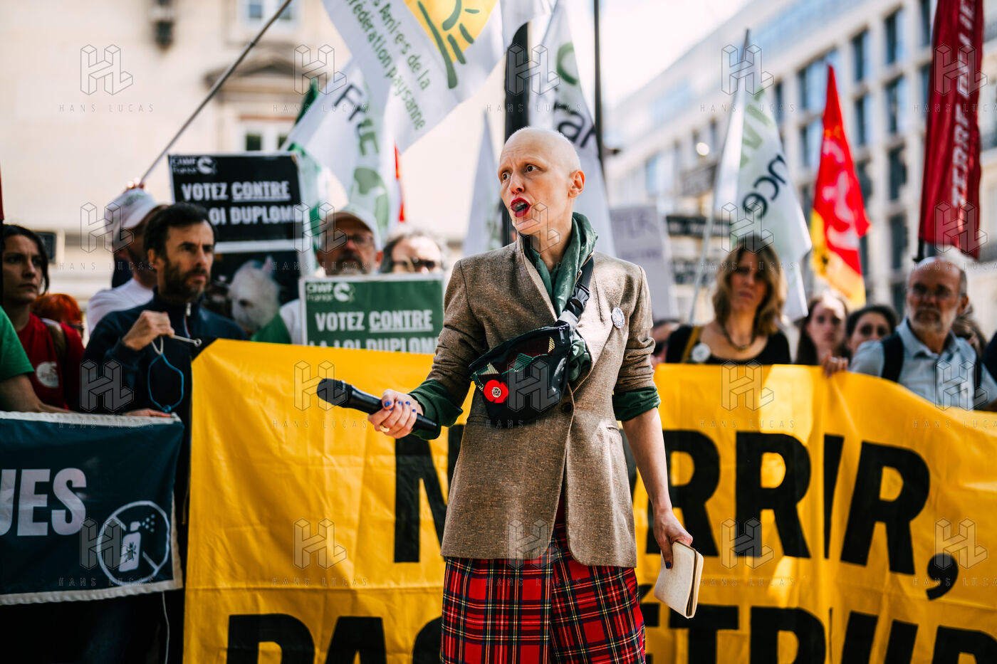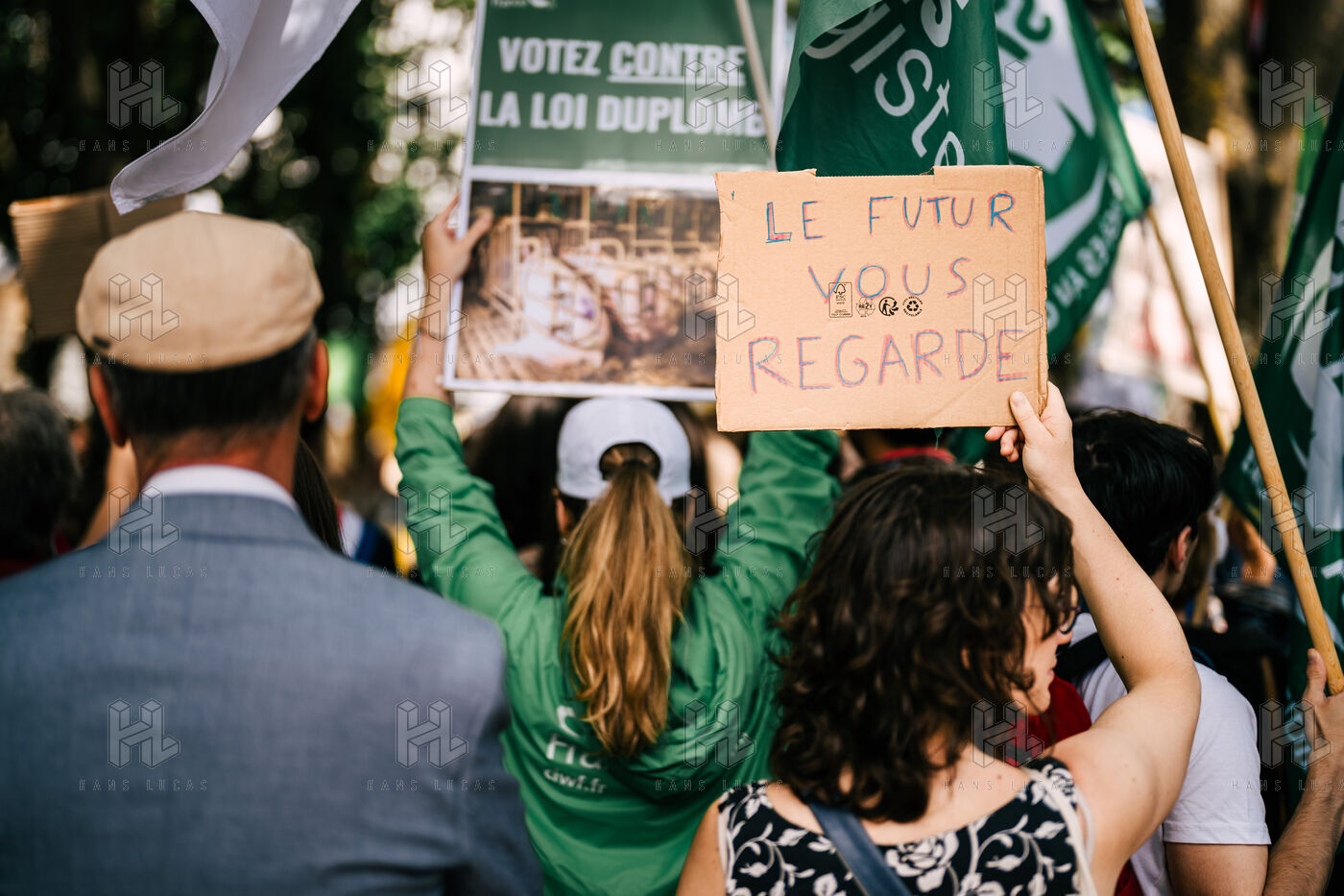 Manifestation écologiste contre la loi Dupomb, des citoyens dénoncent les dangers des pesticides pour la santé et la biodiversité.