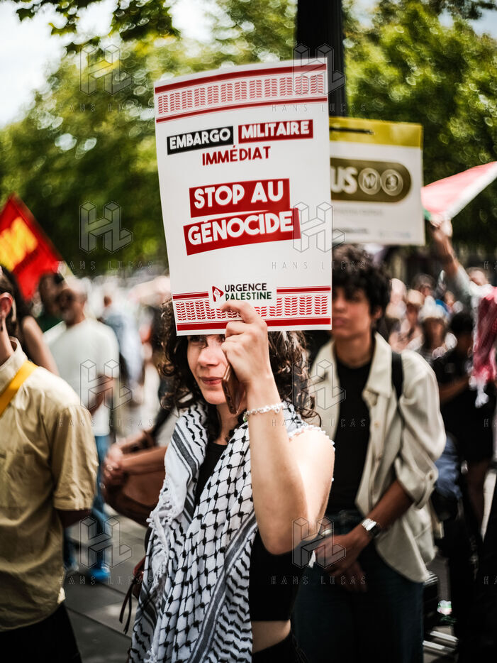 Demonstration in support of Palestine and denunciation of the genocide in Gaza, organized in Paris to demand an immediate ceasefire, the lifting of the blockade and sanctions against Israel.
