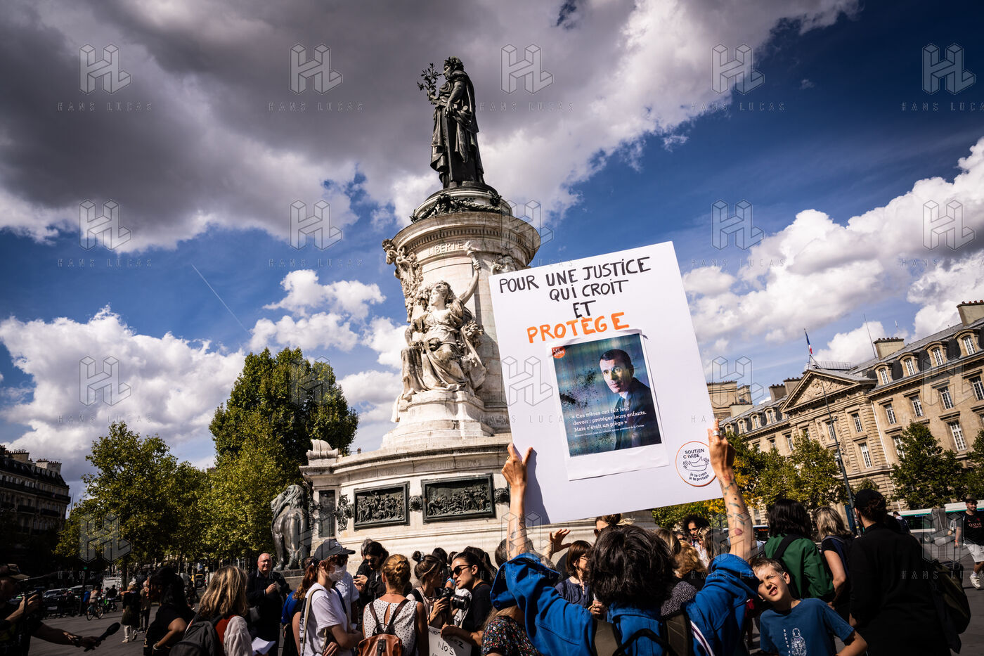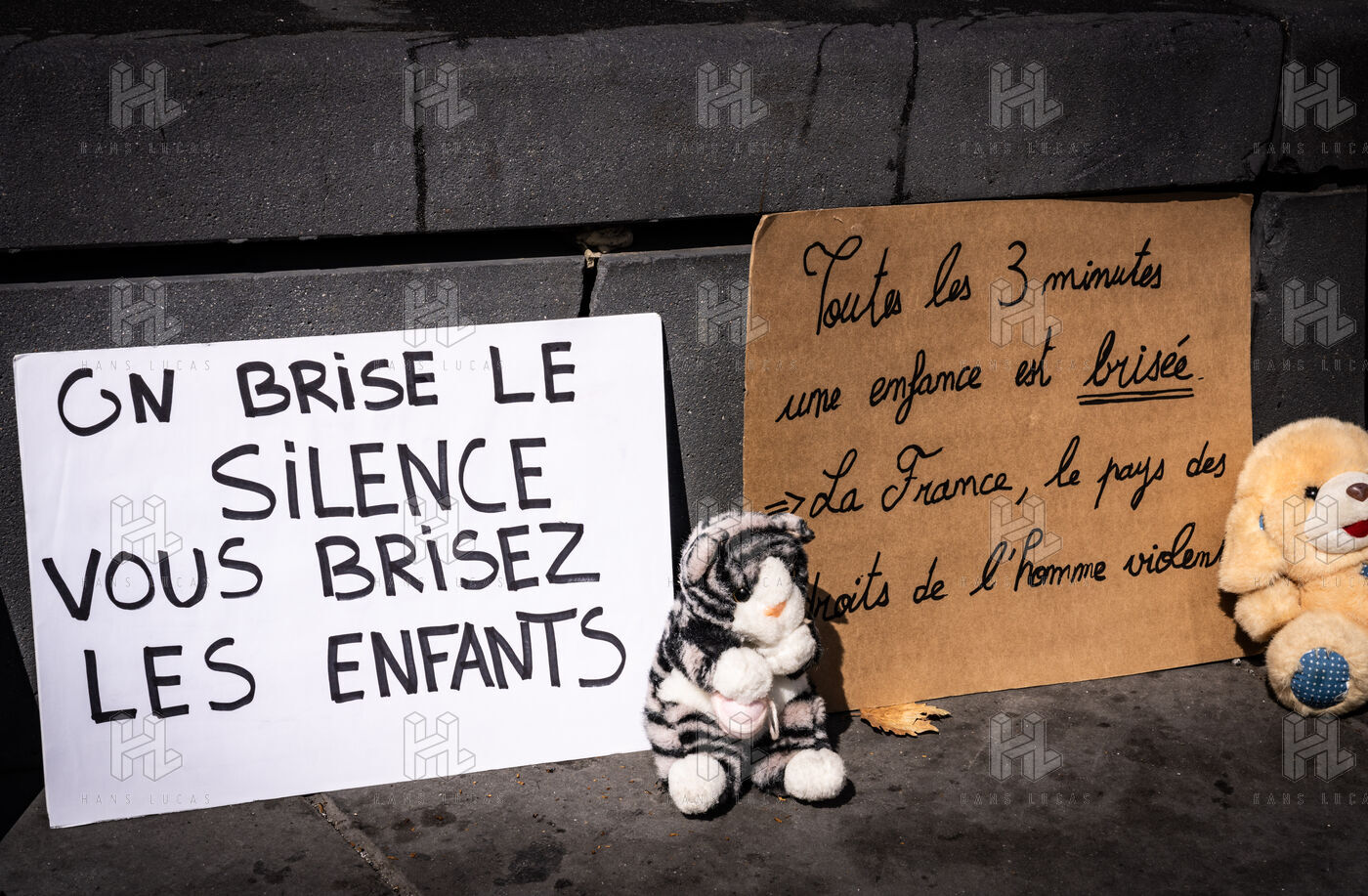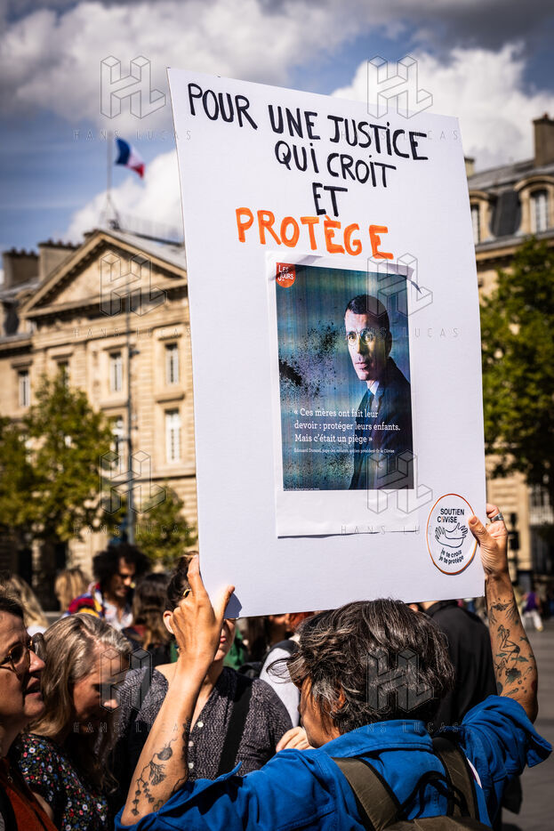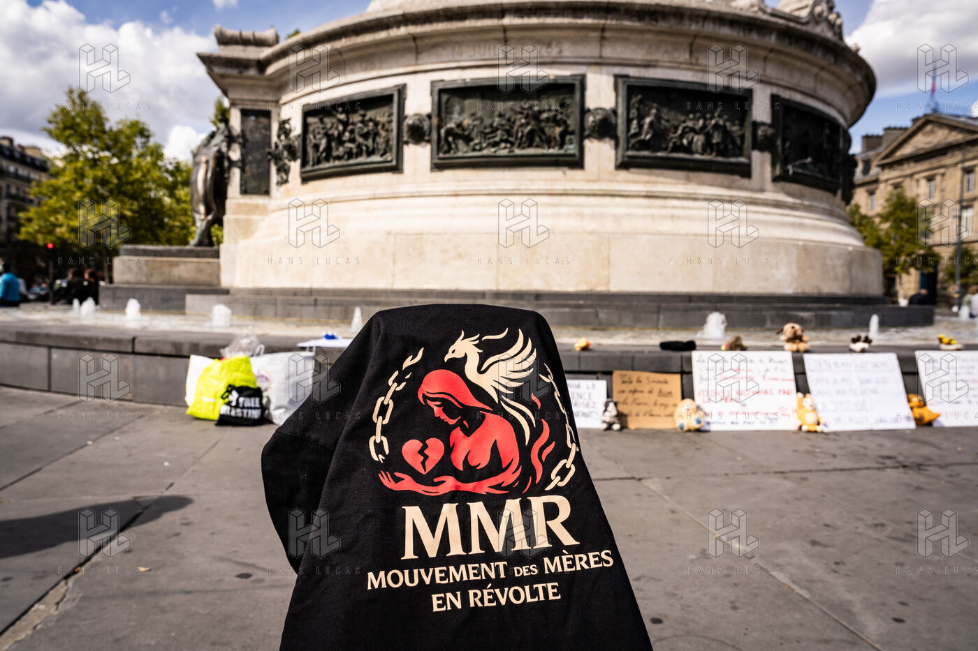 Manifestation des mères protectrices contre les décisions judiciaires relatives à la garde des enfants, à l'inceste et aux violences physiques et sexuelles contre les mineurs, sur la place de la République.