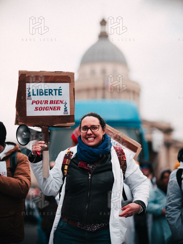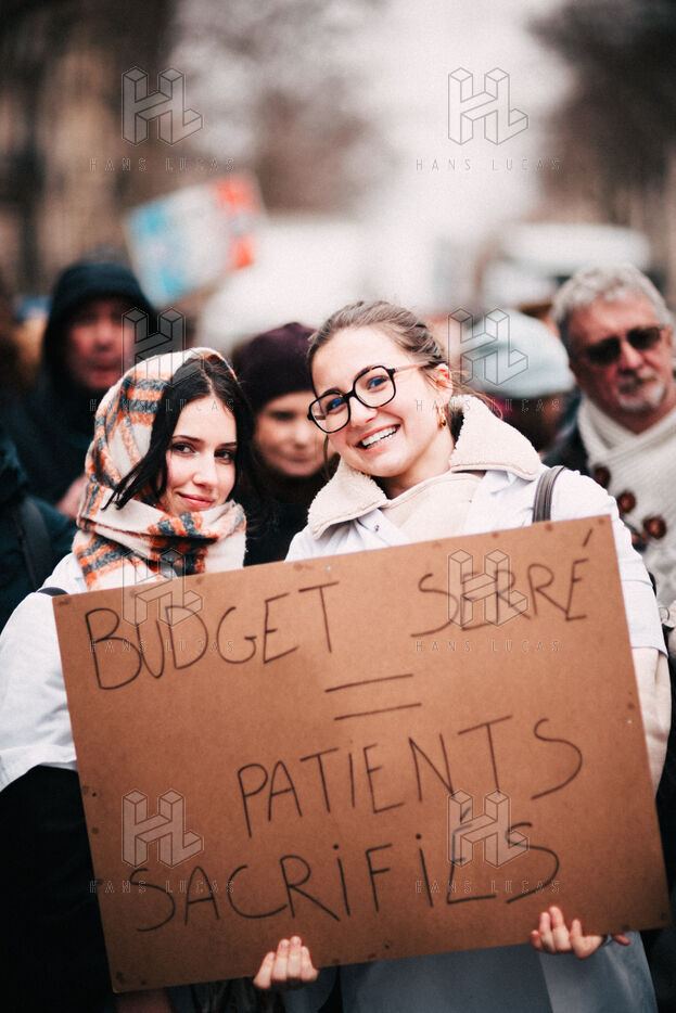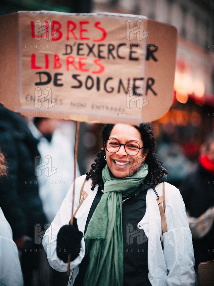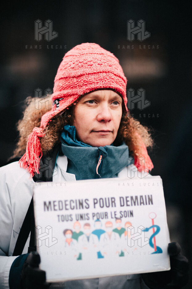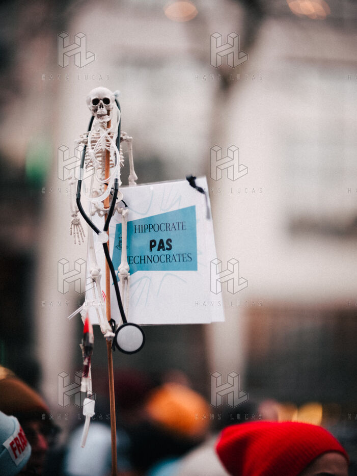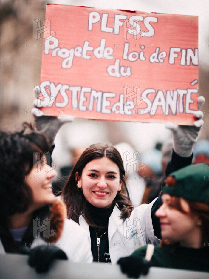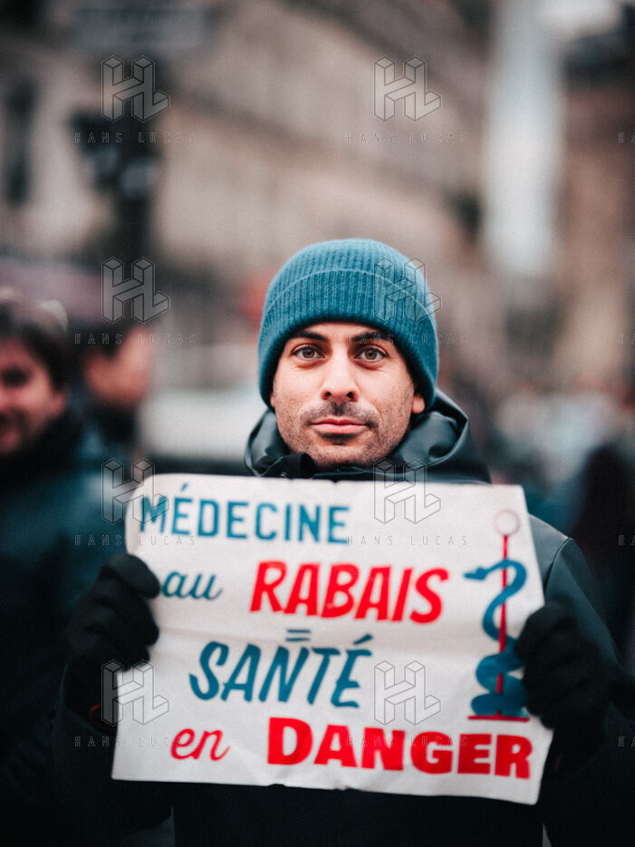 Joint demonstration by private doctors against measures detrimental to local healthcare in the 2026 Social Security Financing Bill (PLFSS) in Paris.
