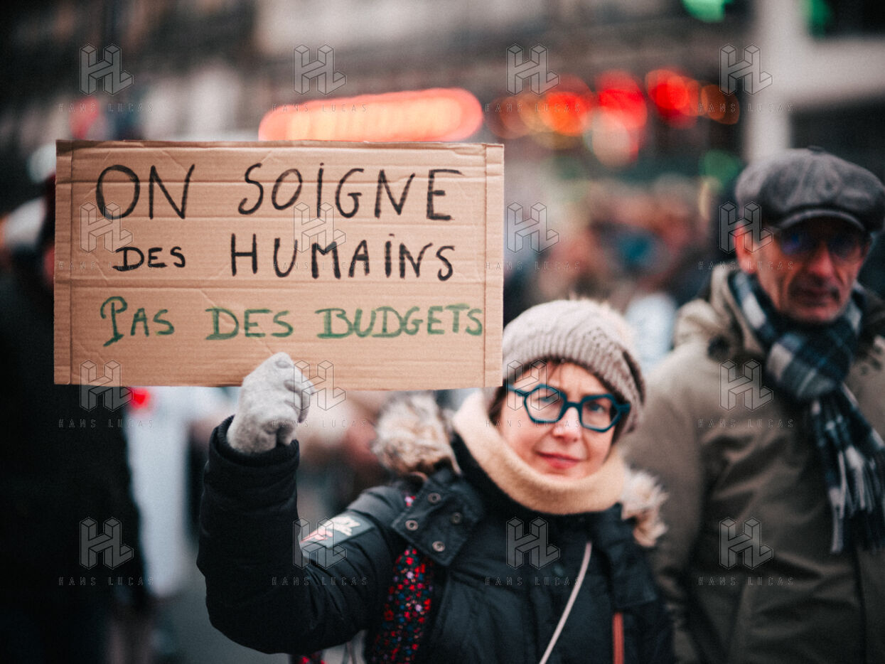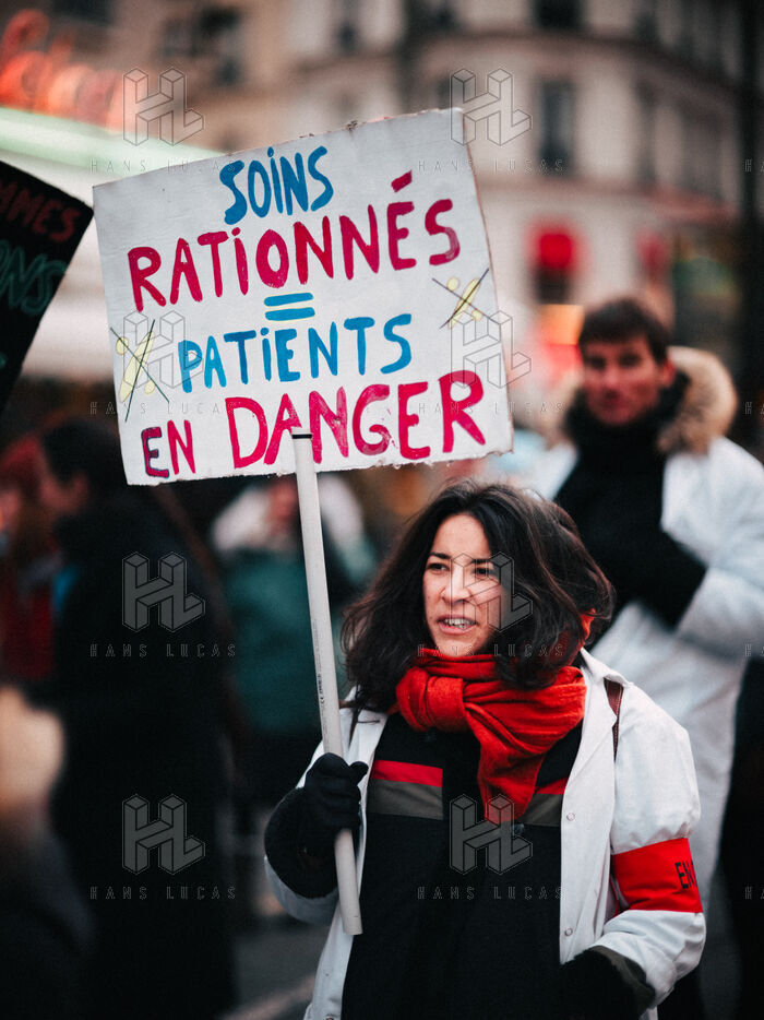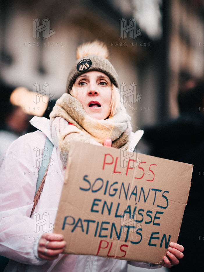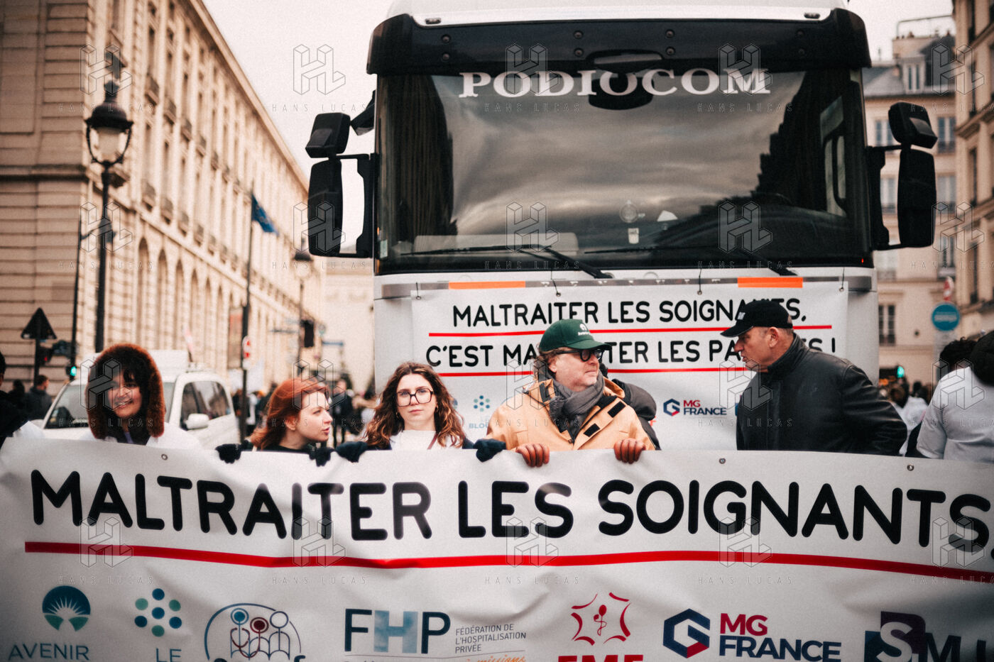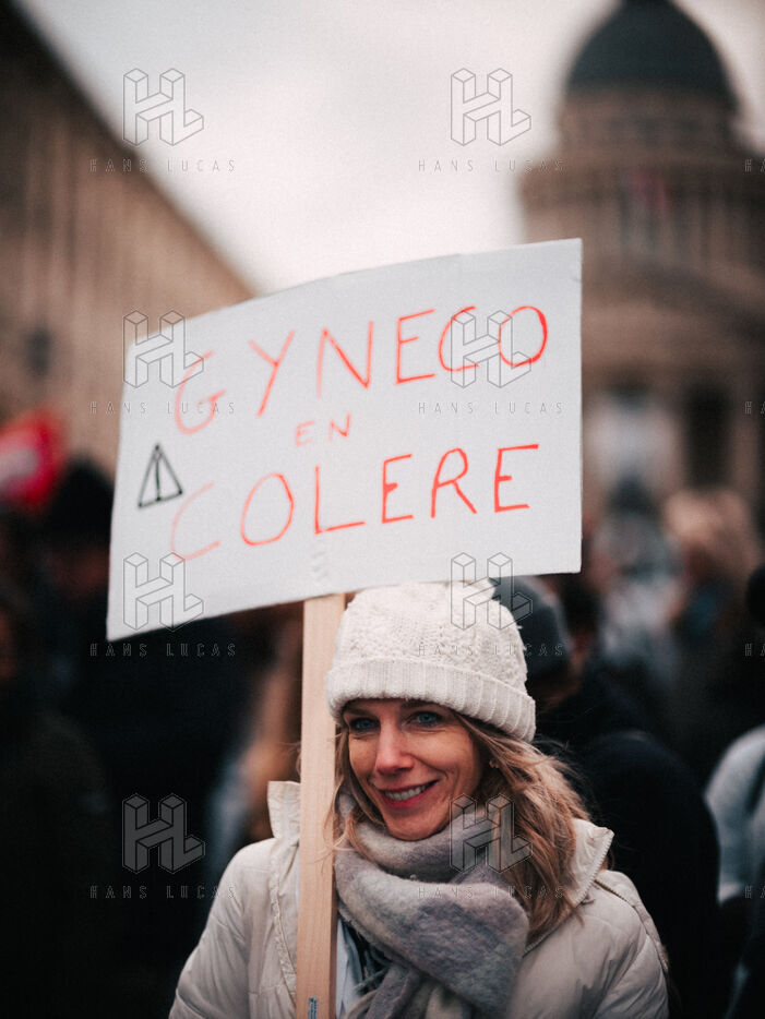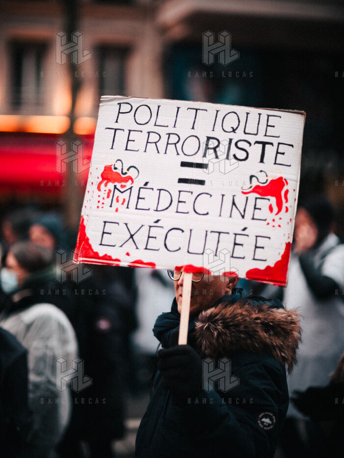 Joint demonstration by private doctors against measures detrimental to local healthcare in the 2026 Social Security Financing Bill (PLFSS) in Paris.